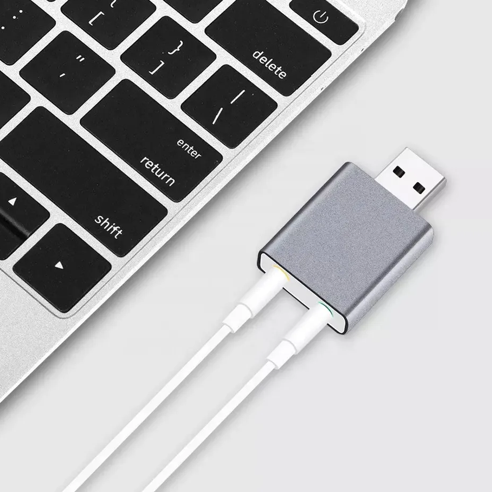 Внешняя звуковая карта USB - Jack 3.5mm / Переходник для наушников и микрофона USB (Выход Папа Штекер) на AUX Jack 3.5mm (Вход Мама Гнездо), Звуковой адаптер юсб - аукс джек 3.5мм / Цвет: Silver Серебристый