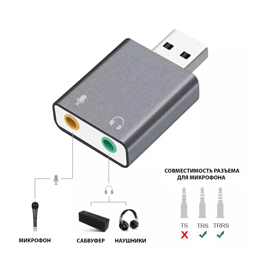 СохранитьВнешняя звуковая карта USB - Jack 3.5mm / Переходник для наушников и микрофона USB (Выход Папа Штекер) на AUX Jack 3.5mm (Вход Мама Гнездо), Звуковой адаптер юсб - аукс джек 3.5мм интересное: