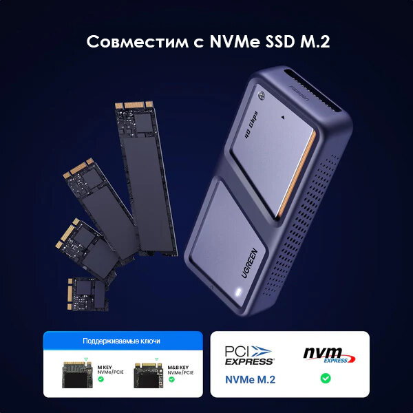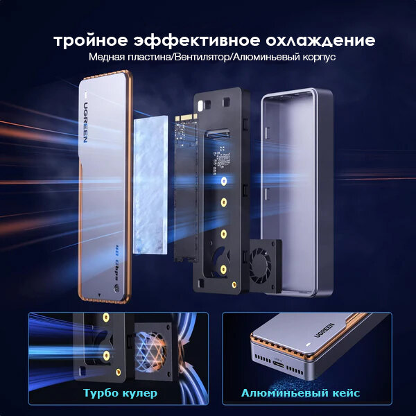 Внешний корпус Thunderbolt, USB 4.0 для SSD M.2 NVMe UGREEN Triple Heat Anti-Drop CM642 интересное: