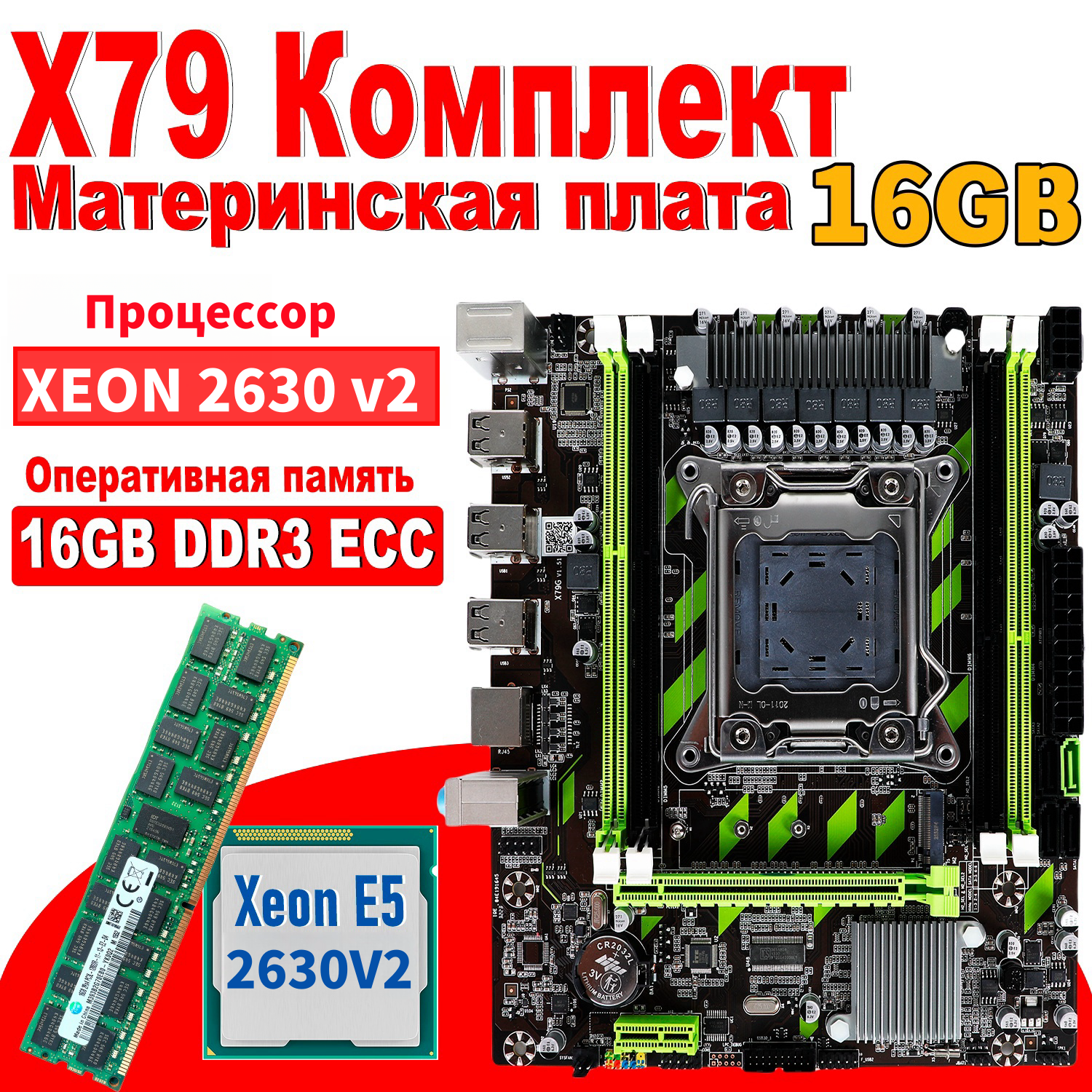Купить Материнская плата комплект X79 LGA 2011+процессор Xeon E5 2630v2 +Оперативная память DDR3 1×16 ГБ 1600МГц ECC
