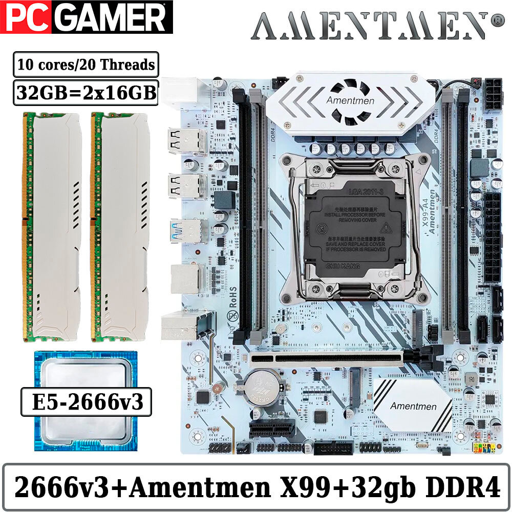 Купить Комплект материнская плата Amentmen X99 A4 + Xeon 2666V3 + 32GB DDR4 ECC REG