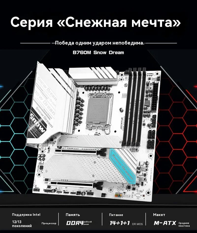 JGINYUE Материнская плата B760M Snow Dream ;4*DDR4;3*M2;Поддержка процессоров Intel 12-го, 13-го и 14-го поколений; LGA1700 интересное: