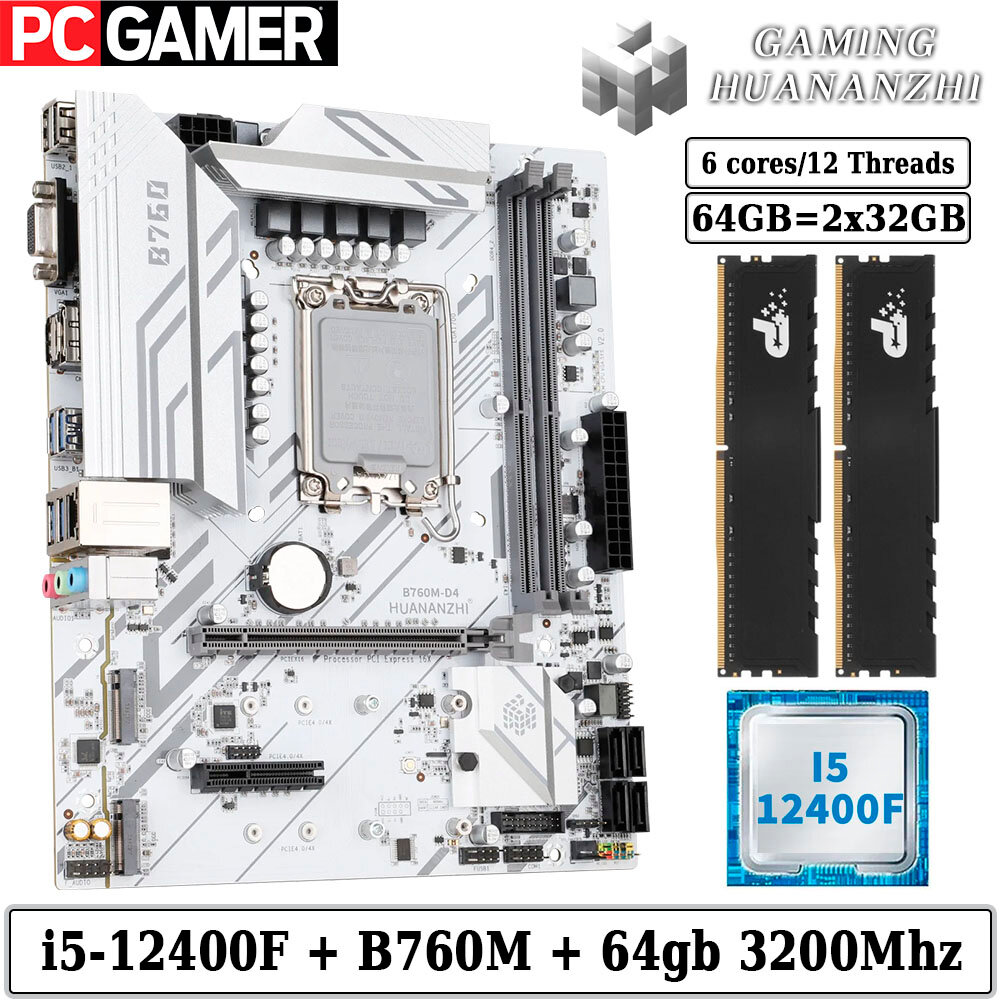 Комплект материнская плата Huananzhi B760M-D4 + core i5 12400F + 64GB DDR4 3200Mhz интересное: