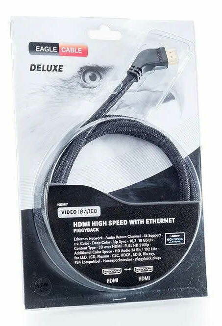 СохранитьHDMI кабели Eagle Cable DELUXE High Speed HDMI Eth. angled 3,2 m, 10011032 интересное: