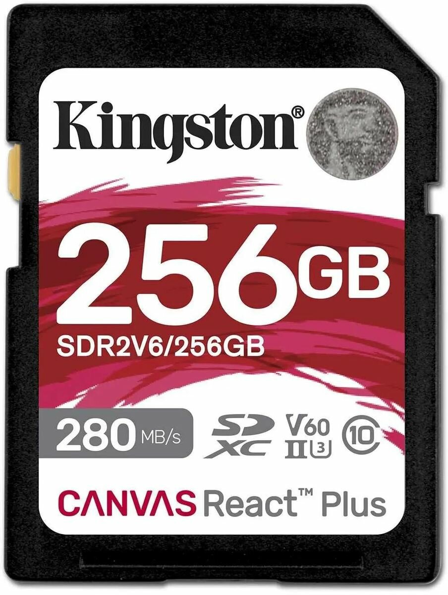 Карта памяти SDXC UHS-II Kingston Canvas React Plus 256 ГБ, 280 МБ/с, Class 10, SDR2V6/256GB, 1 шт., без адаптера интересное: