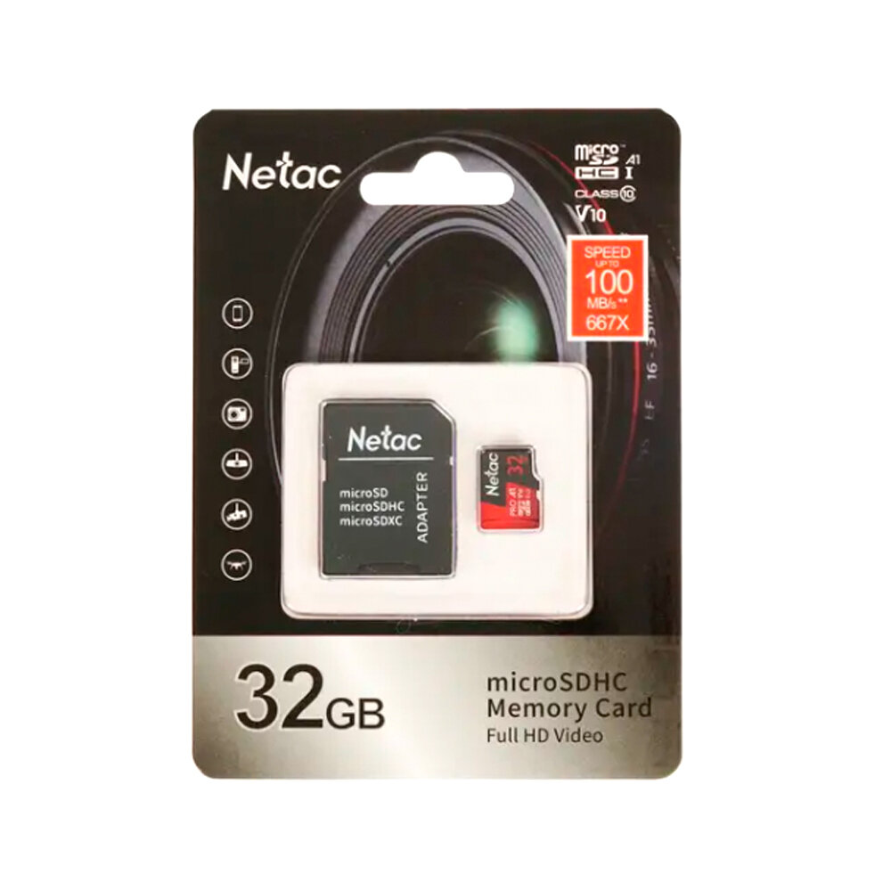 Карта памяти Netac MicroSD 32GB V10A1C10 100Mb/s+adp
