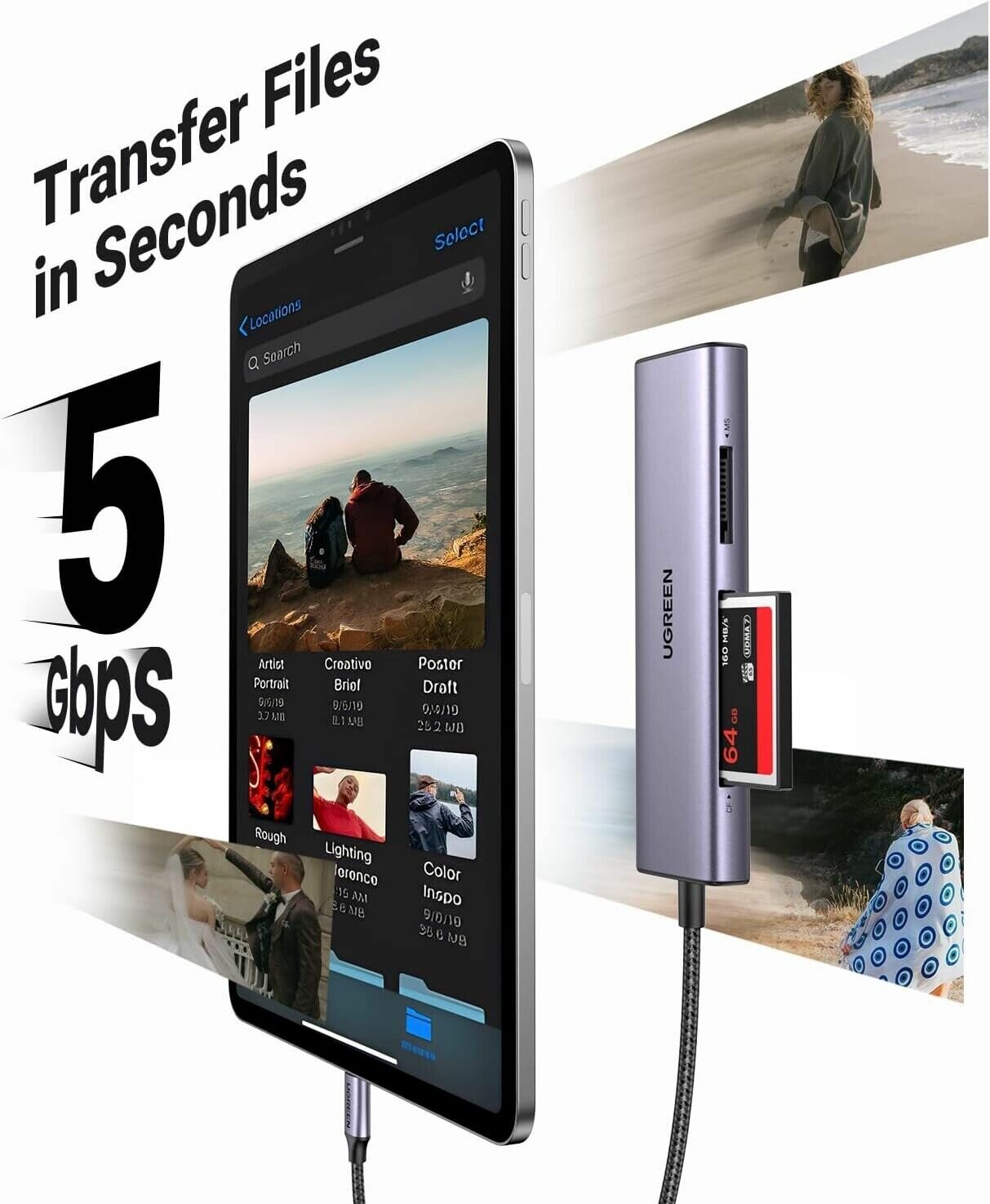 Кардридер UGREEN CM627 (15307) 4-in-1 USB-C Card Reader. Цвет: серый интересное: