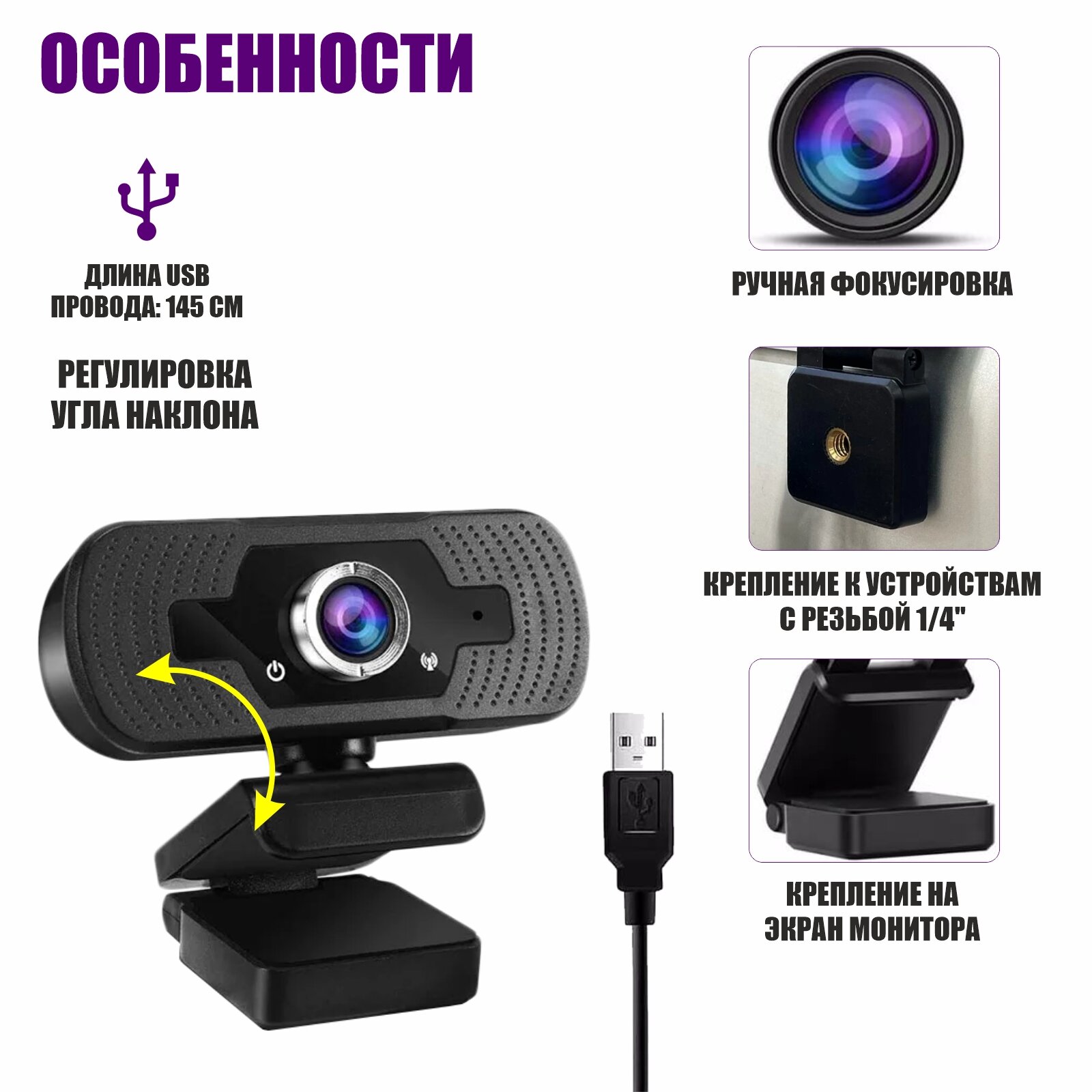 | Дополнительная информация | Важно: при установки на потолок необходимо учитывать длину кабеля для соединения с ПК. Важно! Избегайте контакта объектива с руками, острыми или грубыми предметами; для чистки используйте чистую и мягкую ткань . Не используйте его в жарких, холодных, пыльных или влажных условиях. Избегайте падений, сильное падение может привести к повреждению объектива, неисправности или появлению царапин на поверхности. Важно! Внешний вид модели может отличаться от заявленного в деталях, что не влияет на технические характеристики товара! |