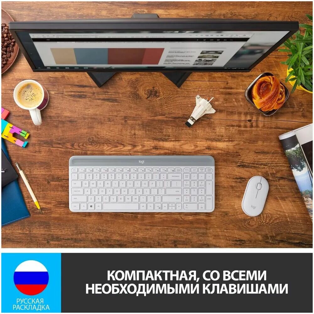 Клавиатура и мышь беспроводные Logitech Slim Combo MK470 белый/серый (920-009207) интересное: