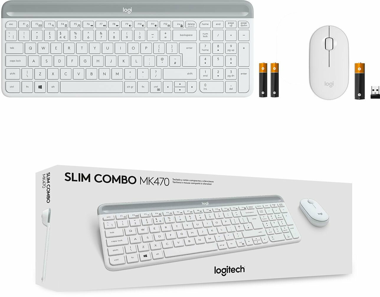 Купить Клавиатура и мышь беспроводные Logitech Slim Combo MK470 белый/серый (920-009207)