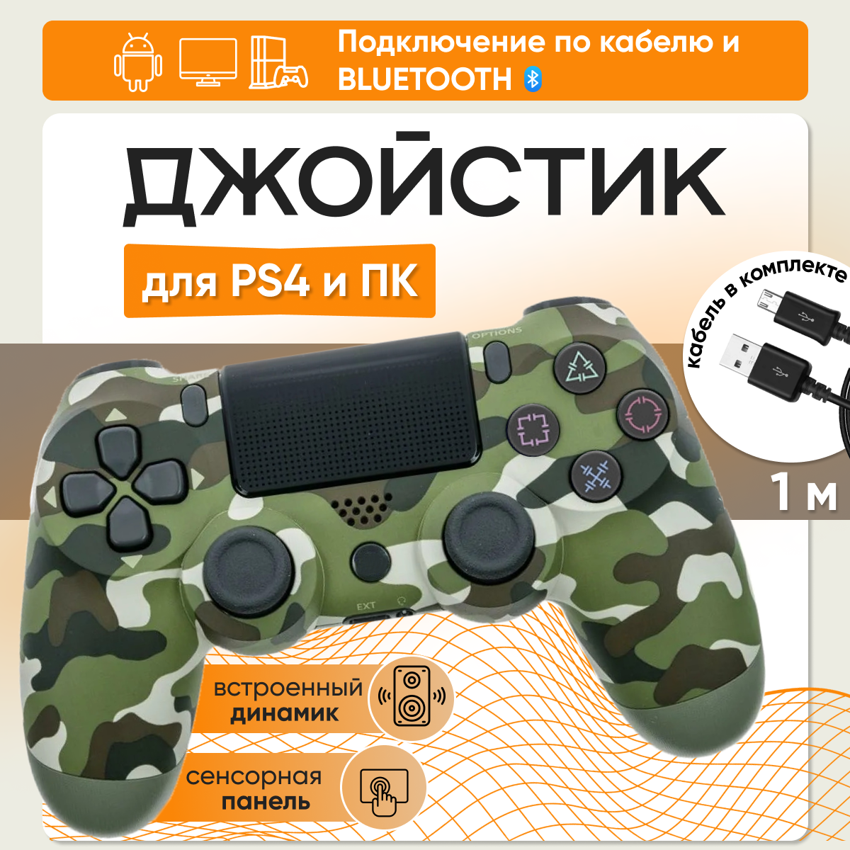 Купить Геймпад для PS4 Зеленый камуфляж/ Джойстик контроллер для Playstation 4, PC, Android, iOS + провод 1 метр