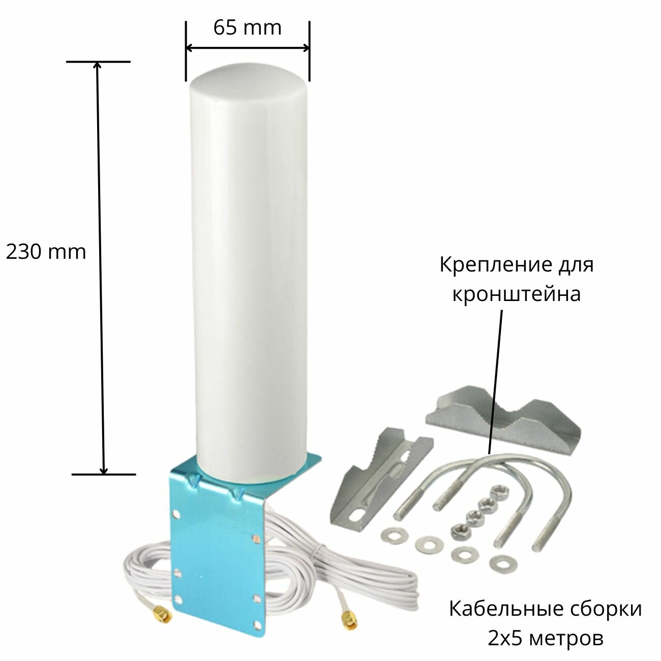 Всенаправленная (круговая) MIMO 10-12 дБи антенна 2G/3G/4G кабель 5 метров, разъемы SMA-male интересное: