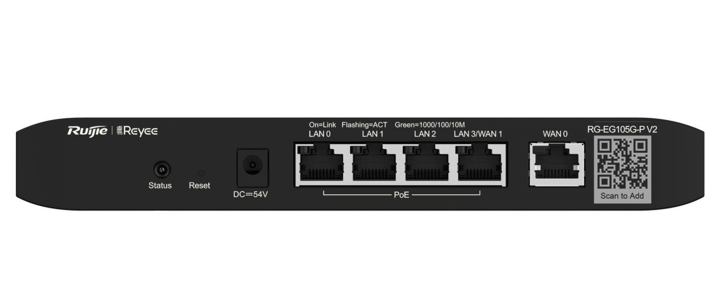 Купить Маршрутизатор Ruijie Reyee RG-EG105G-P V2 5-Port Gigabit (4 PoE/POE+ 54W POE budget, 2 WANs, 100 users, 600Mbps)