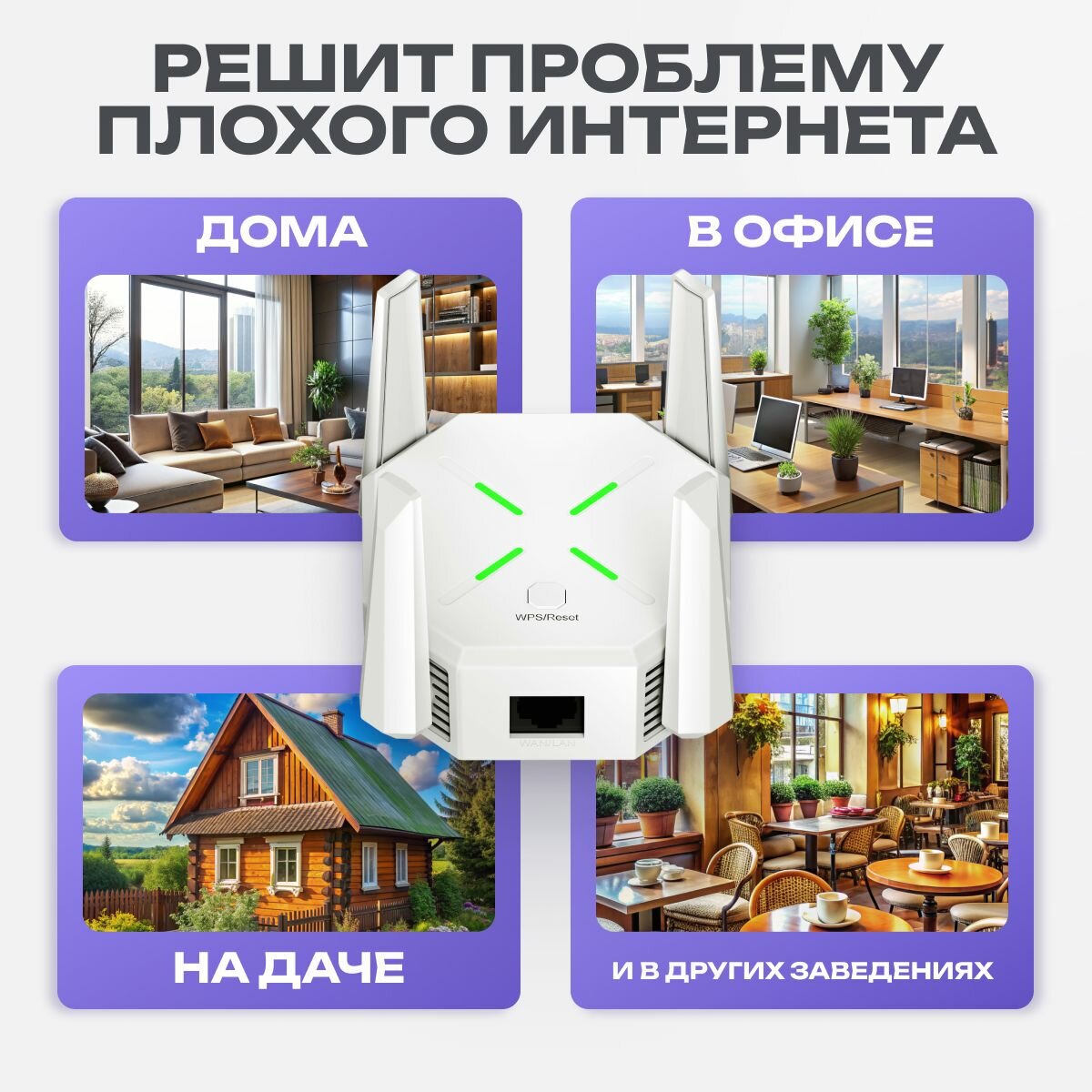 Усилитель Wi-Fi сигнала с 4 антеннами и скоростью до 1200 Мбит / с