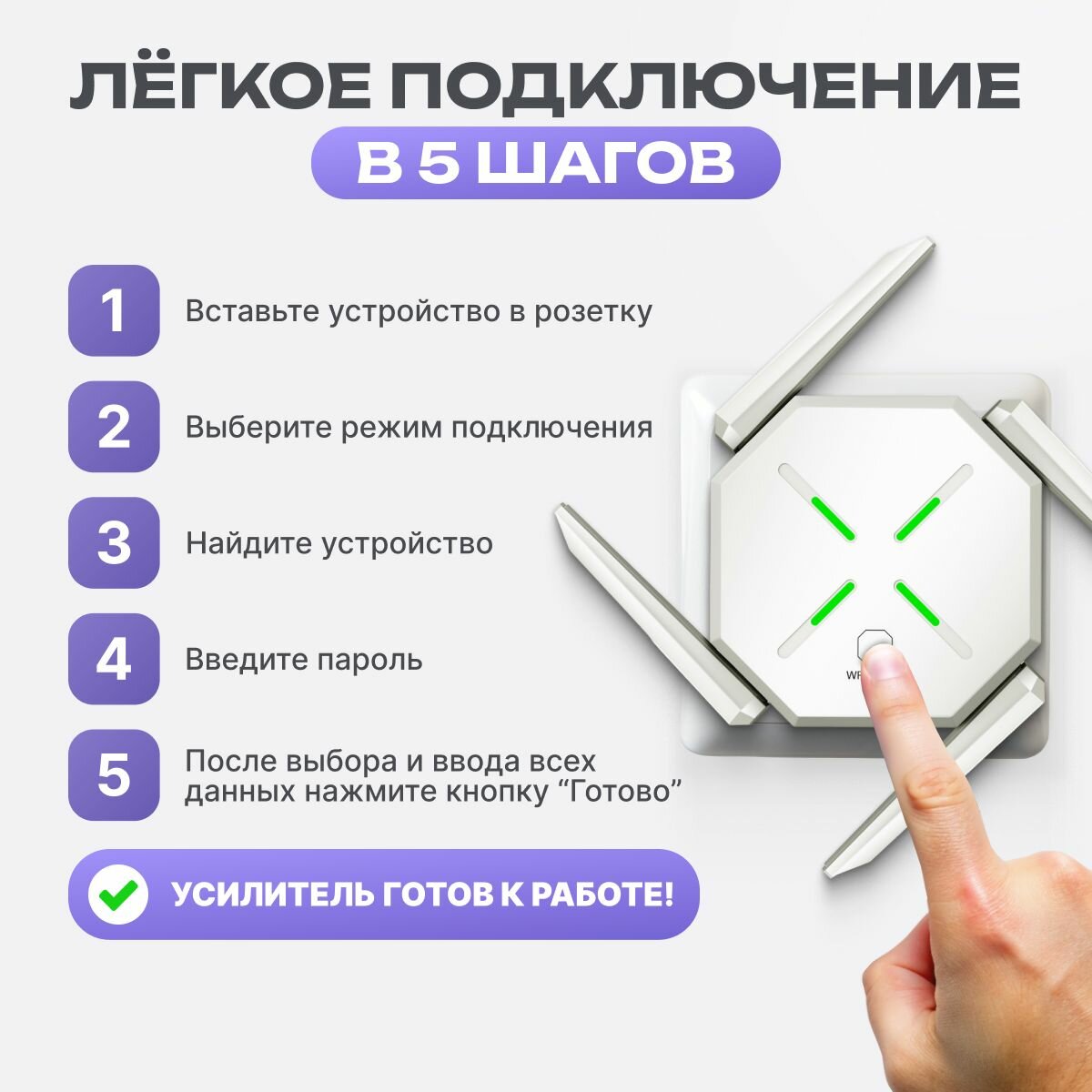 | Дополнительная информация | Усилитель Wi-Fi-сигнала, инструкция, гарантийный талон |