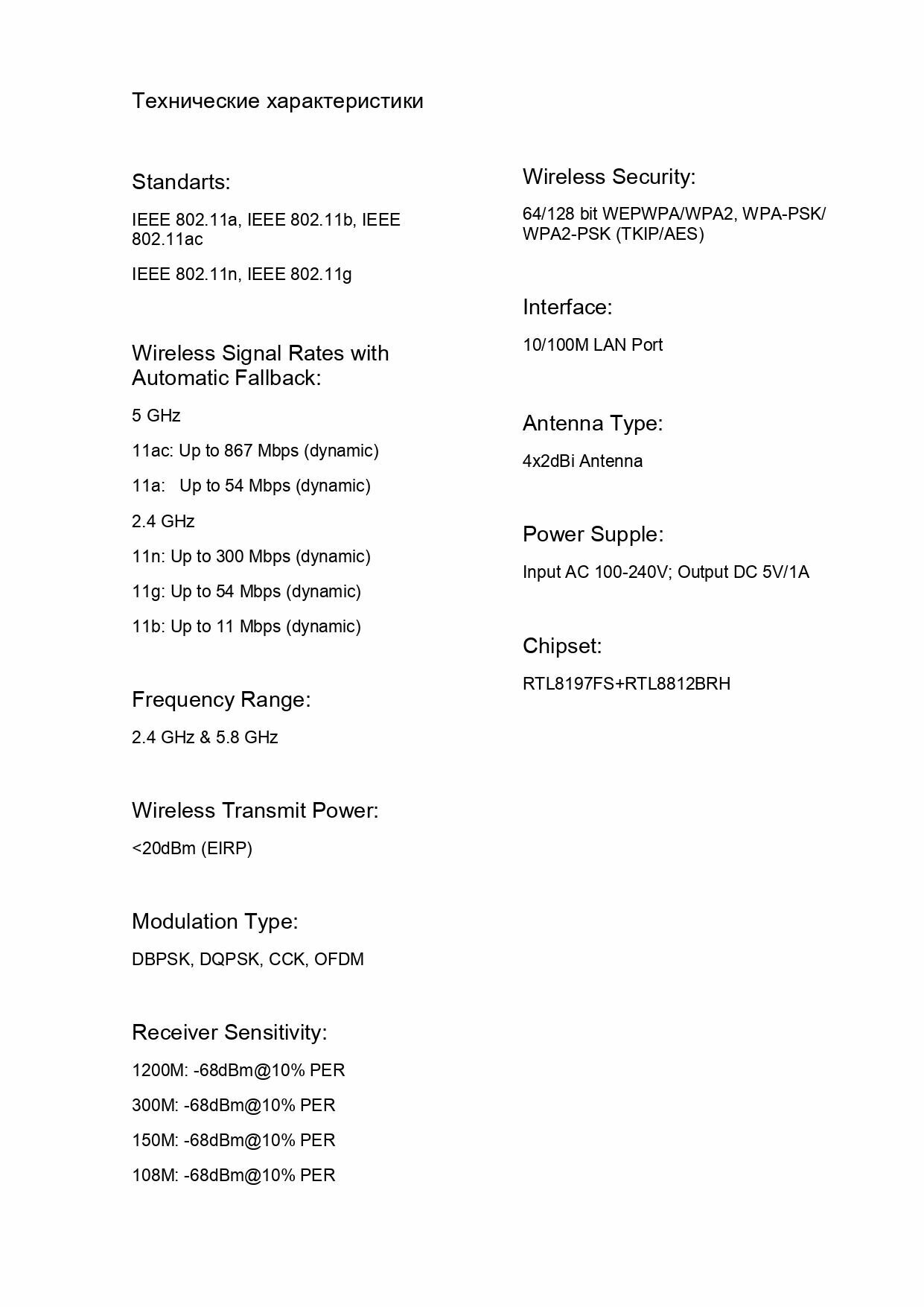 | Макс. скорость беспроводного соединения | 1200 Мбит/с |