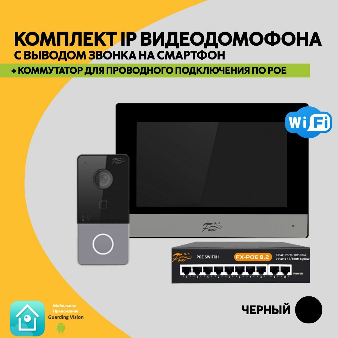 Купить Комплект IP видеодомофона Fox + коммутатор c сенсорными кнопками и моб. приложением черного цвета