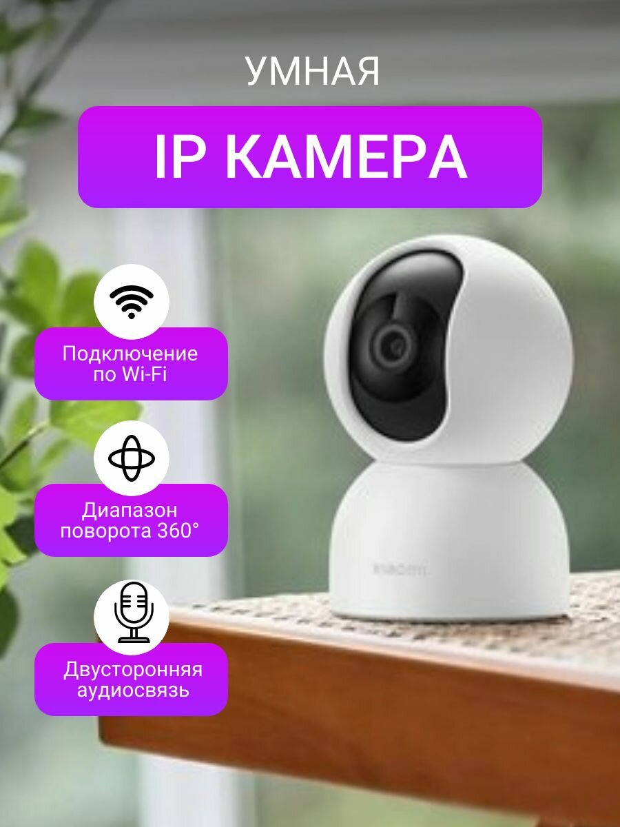 IP-камера видеонаблюдения Wi-Fi для дома с обзором 360 градусов белая