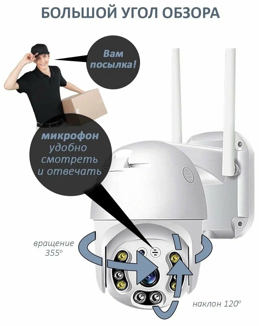 Уличная поворотная камера видеонаблюдения с Wi-Fi Smart Camera интересное: