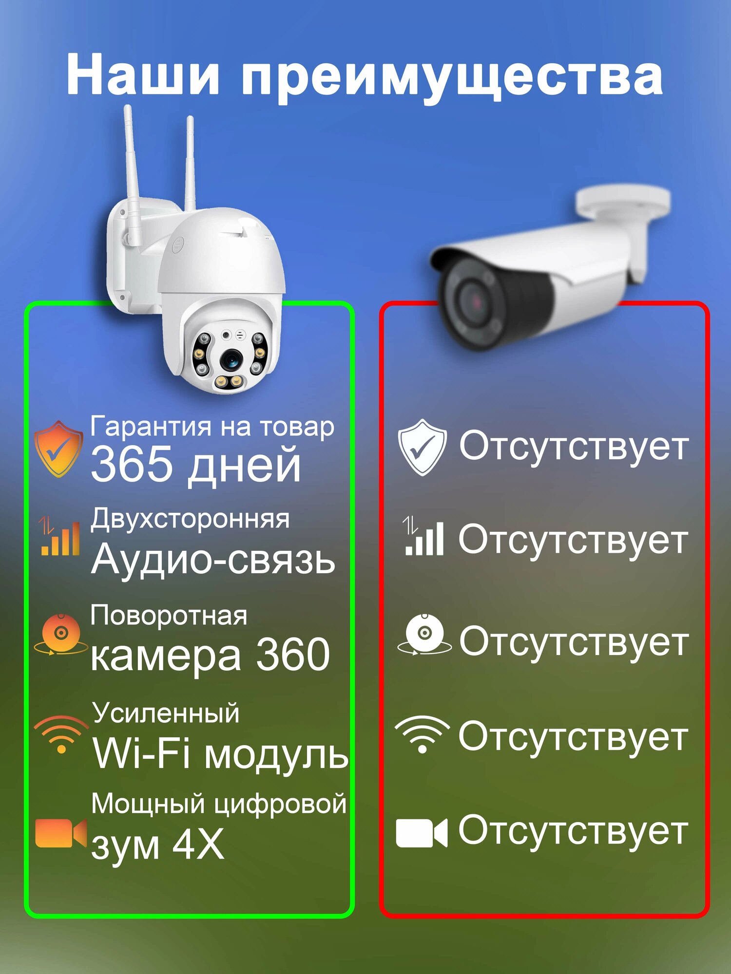 Ниже Вы можете прочитать отзывы на Уличная поворотная камера видеонаблюдения с Wi-Fi Smart Camera, ознакомится с подробными характеристиками, посмотреть интересные обзоры и фотографии на Уличная поворотная камера видеонаблюдения с Wi-Fi Smart Camera.
