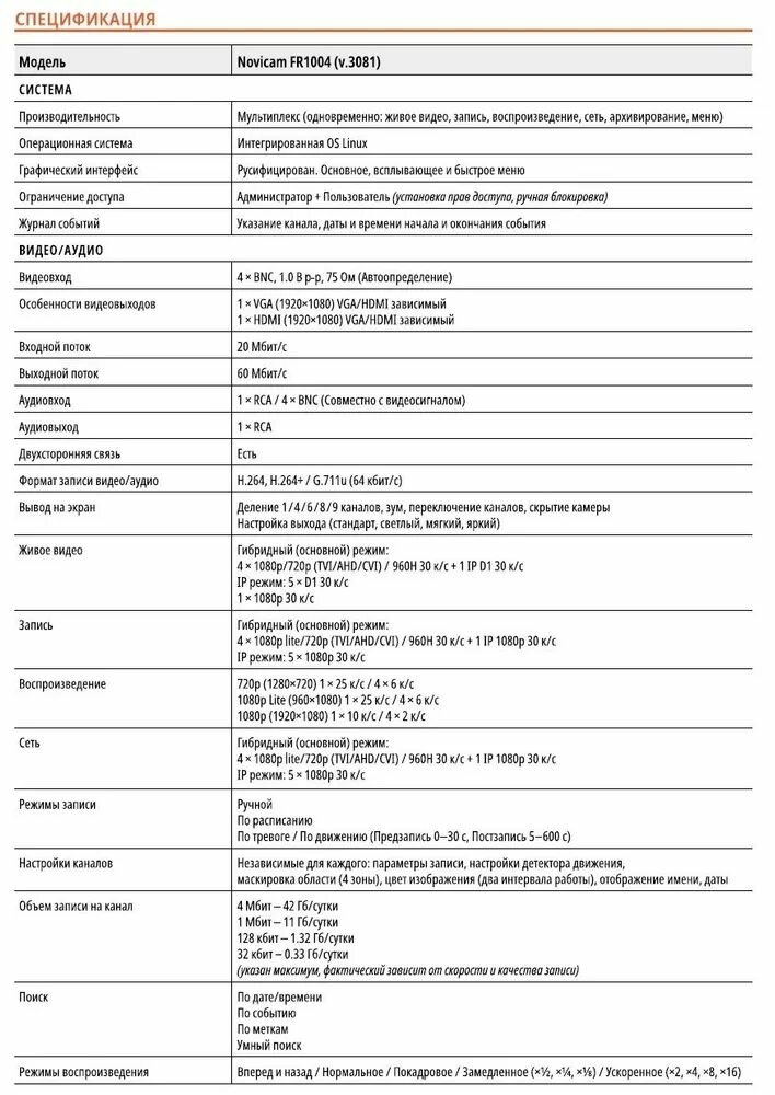 FR1004 Novicam v.3081 - 5 в 1 видеорегистратор 4 канальный, TVI/AHD/CVI/CVBS 1080p Lite, AoC ( IVMS4.5 PRO,Hik-Connect,Guarding Vision) интересное: