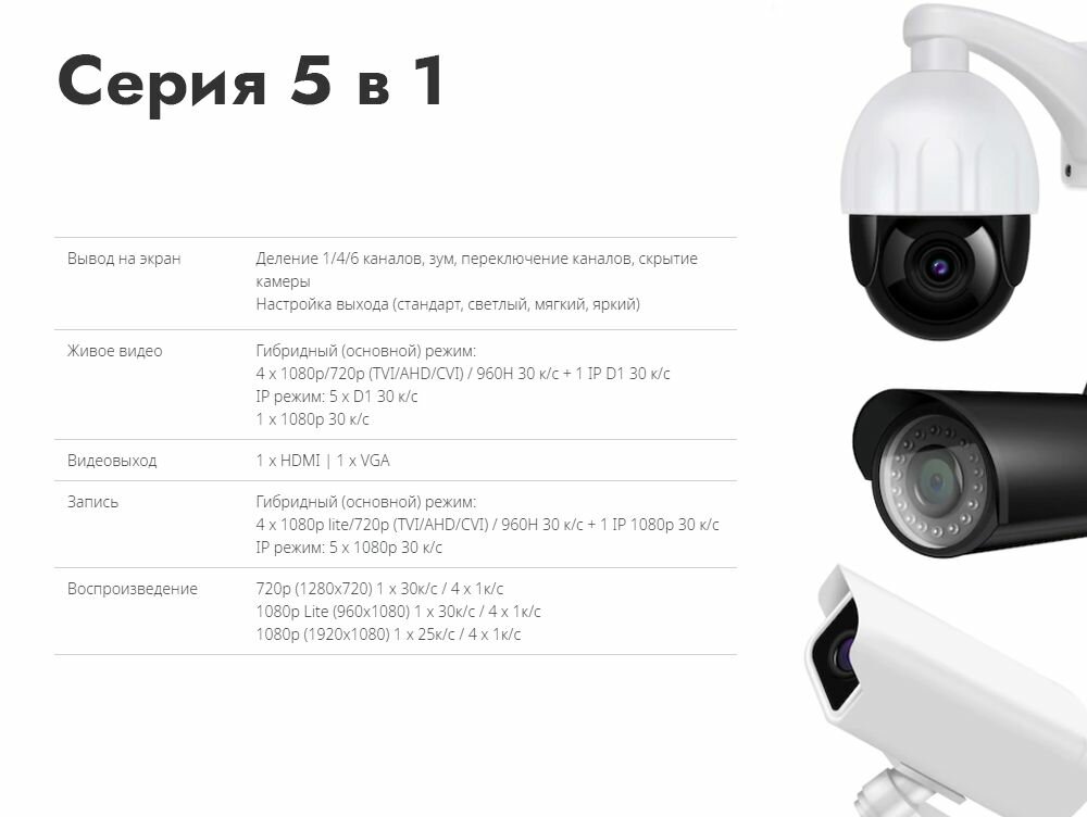 | Максимальное количество IP камер | 5 шт. |