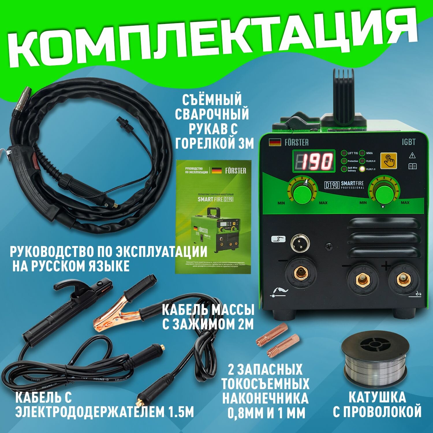Сварочный аппарат полуавтомат FORSTER SmartFire D190/3в1/MIG/MMA/TIG интересное: