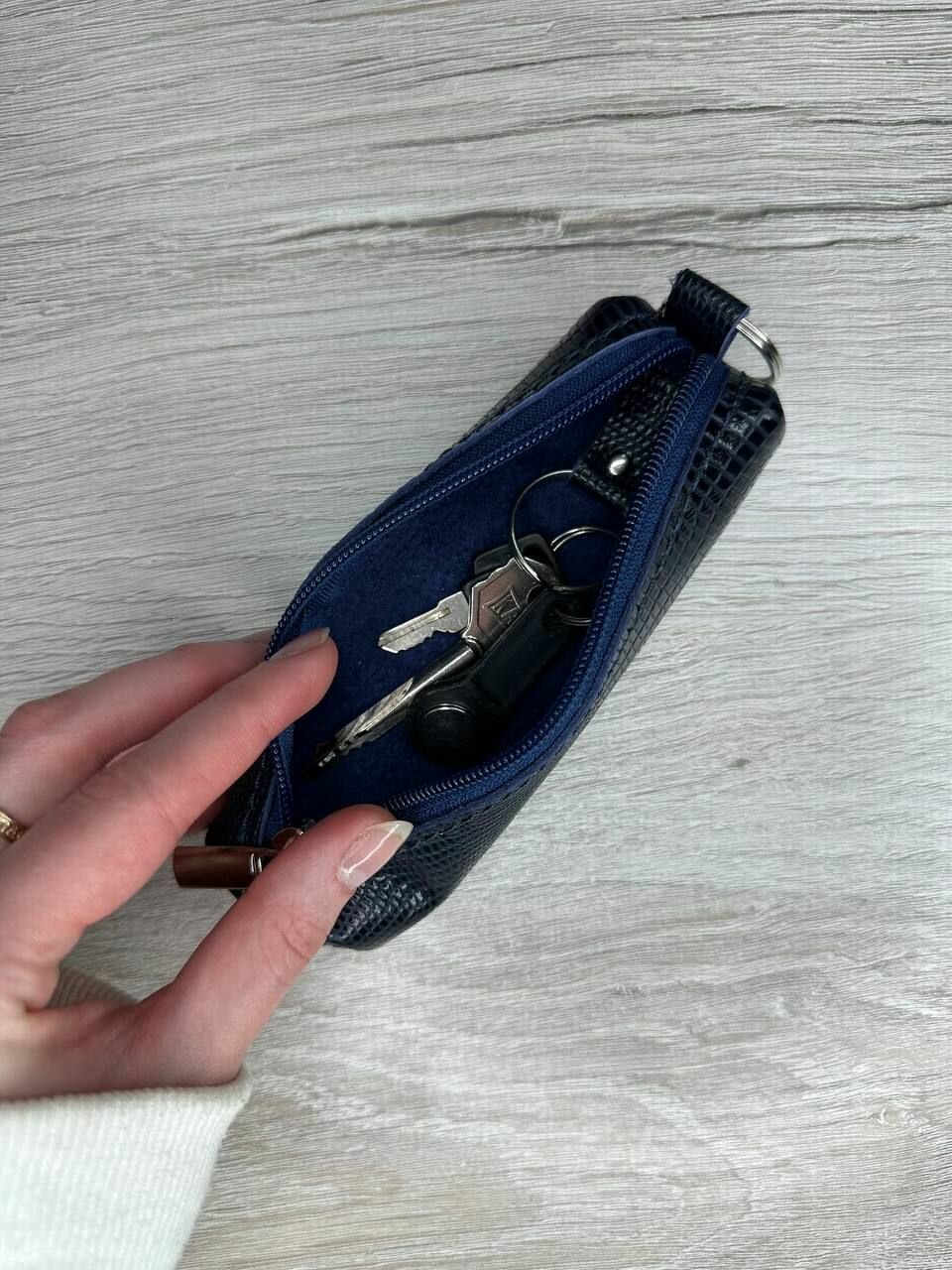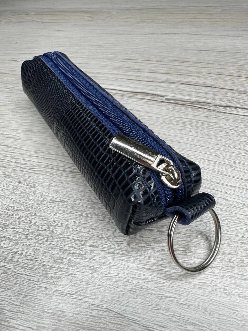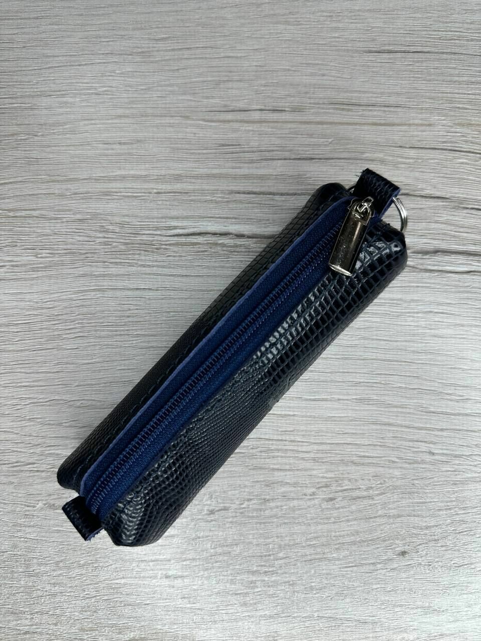 Ключница из натуральной кожи, футляр для ключей кайман темно-синий