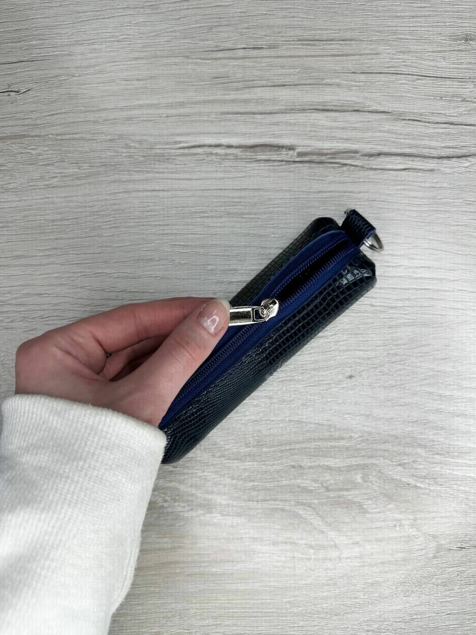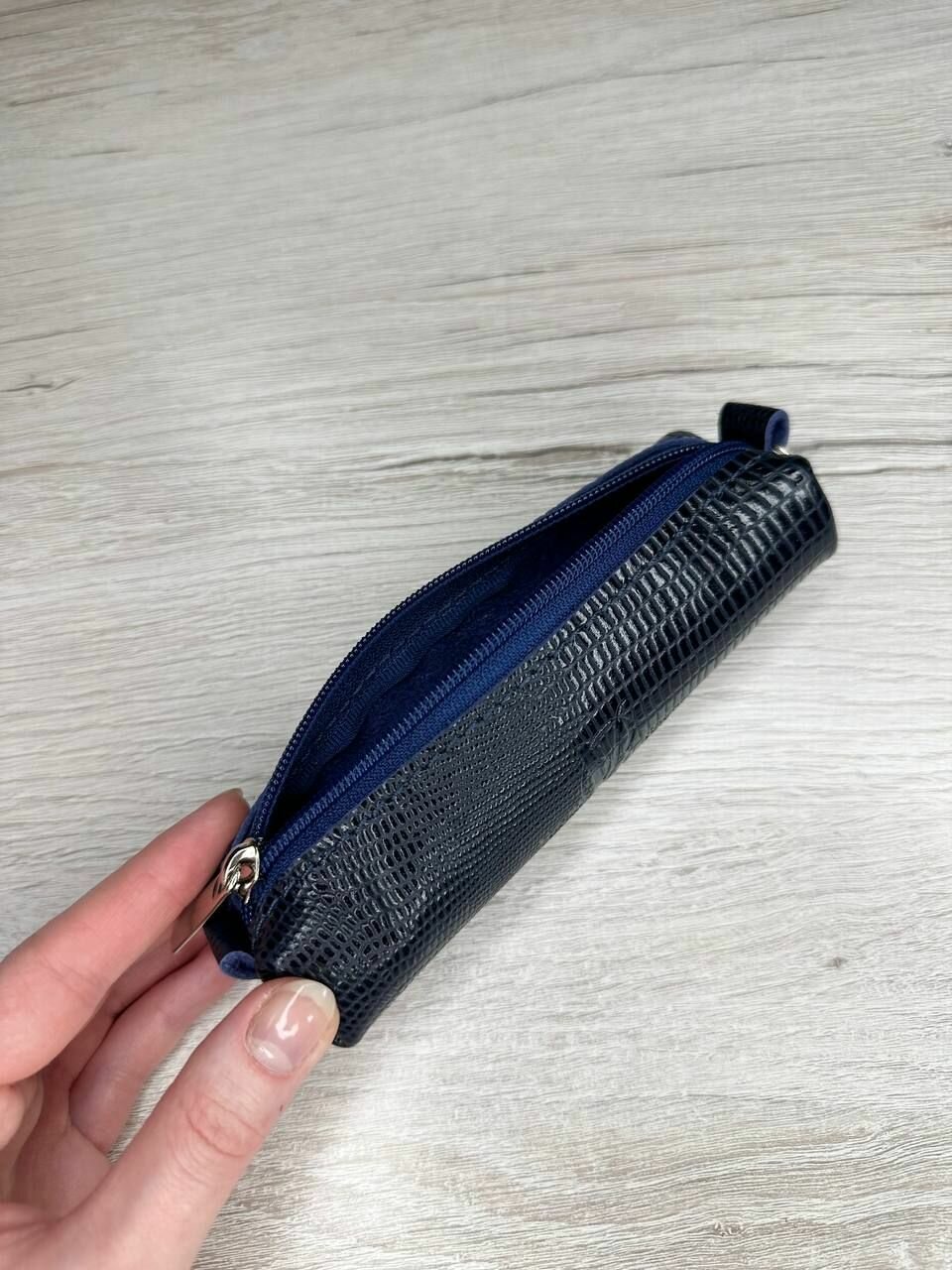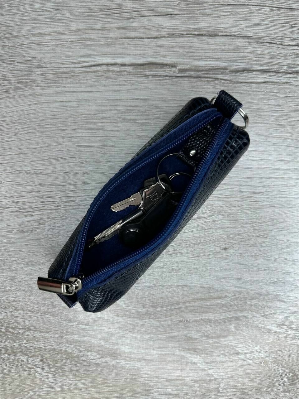 Ключница из натуральной кожи, футляр для ключей кайман темно-синий