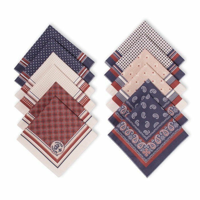 Носовые платки для мужчин и мальчиков, демисезон, хлопок 100%, 12 штук