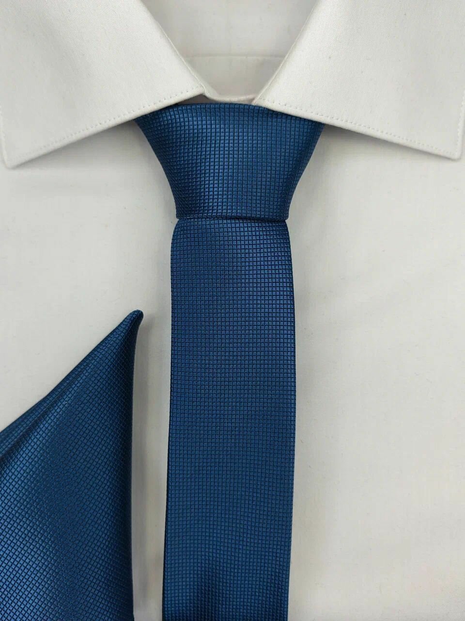 Синий классический галстук и платок-паше в карман