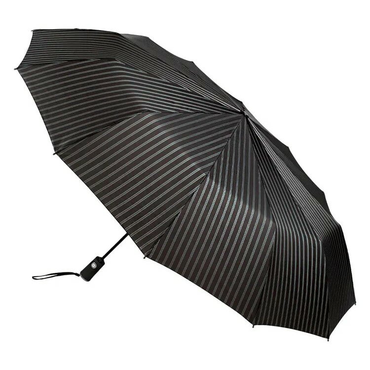 СохранитьЗонт "Три Слона" мужской № 7121-4, радиус купола 70 см (D=124 см), 12 спиц, черный в полоску, ручка прямая пластик интересное: