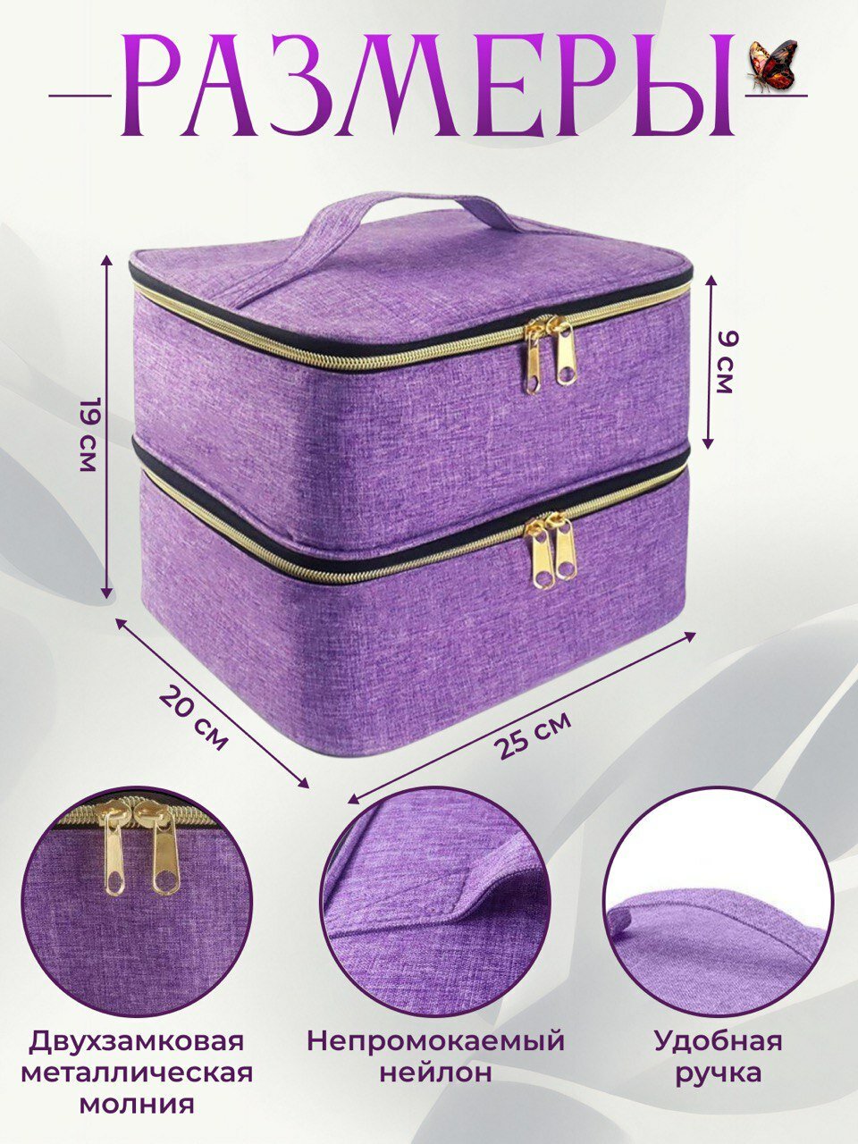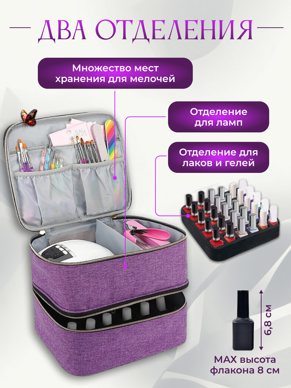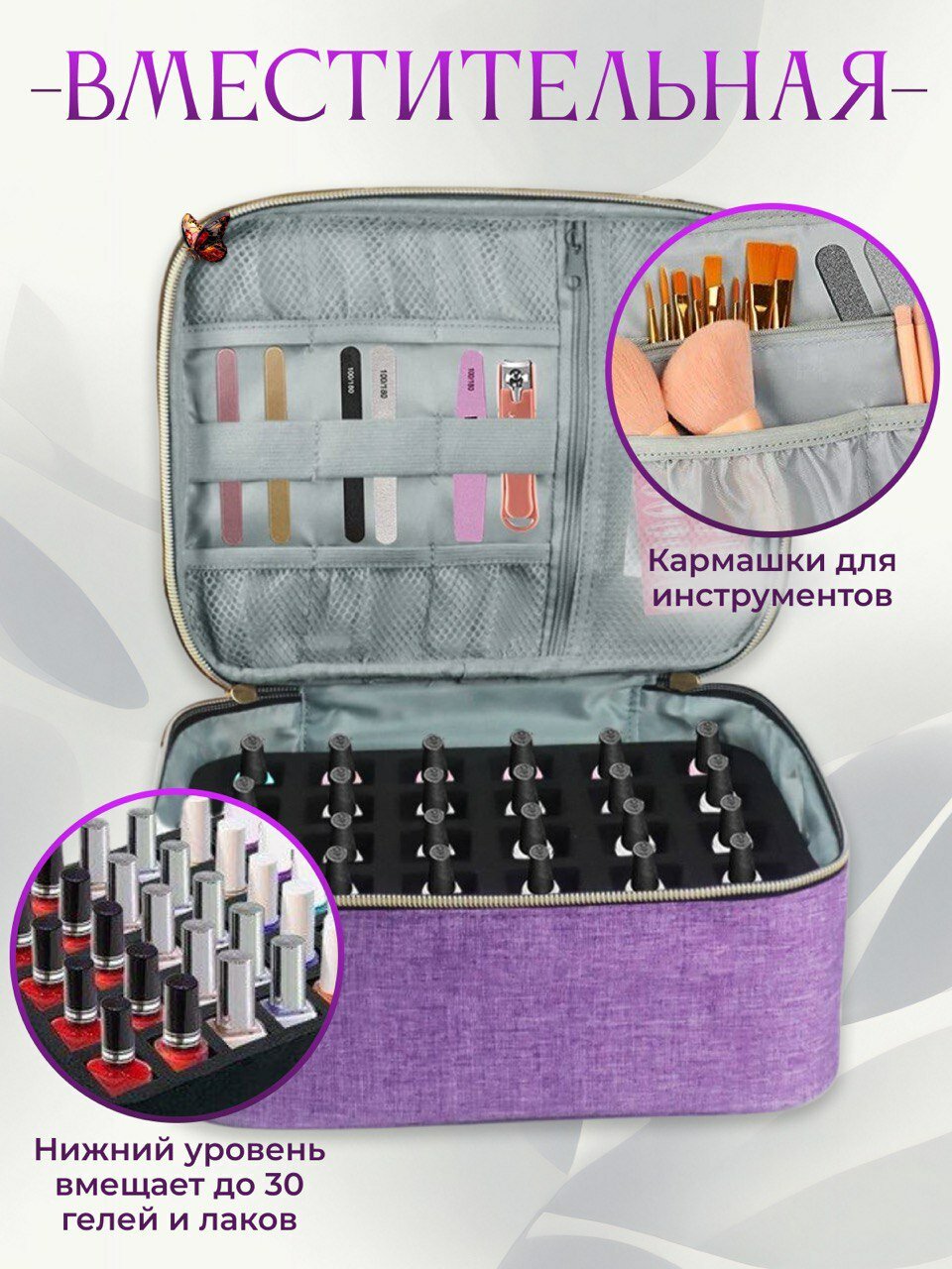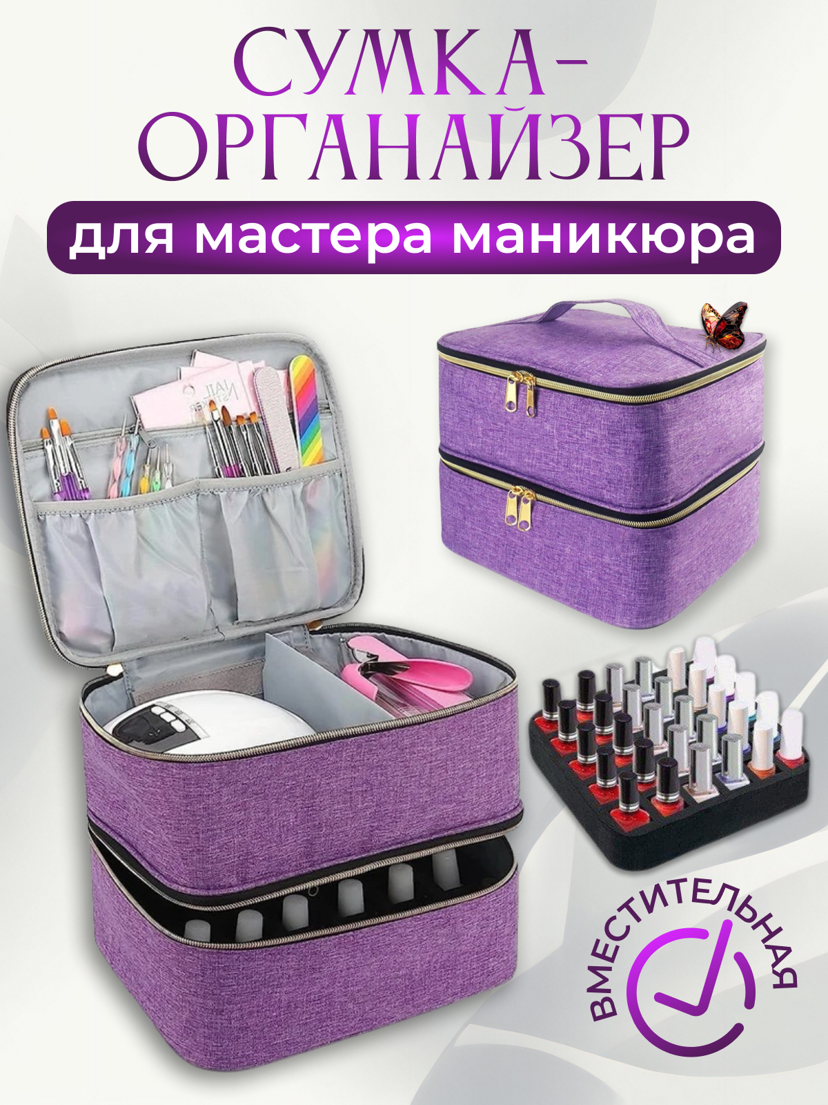 Сумка органайзер для мастера маникюра, бьюти-кейс фиолетовый интересное: