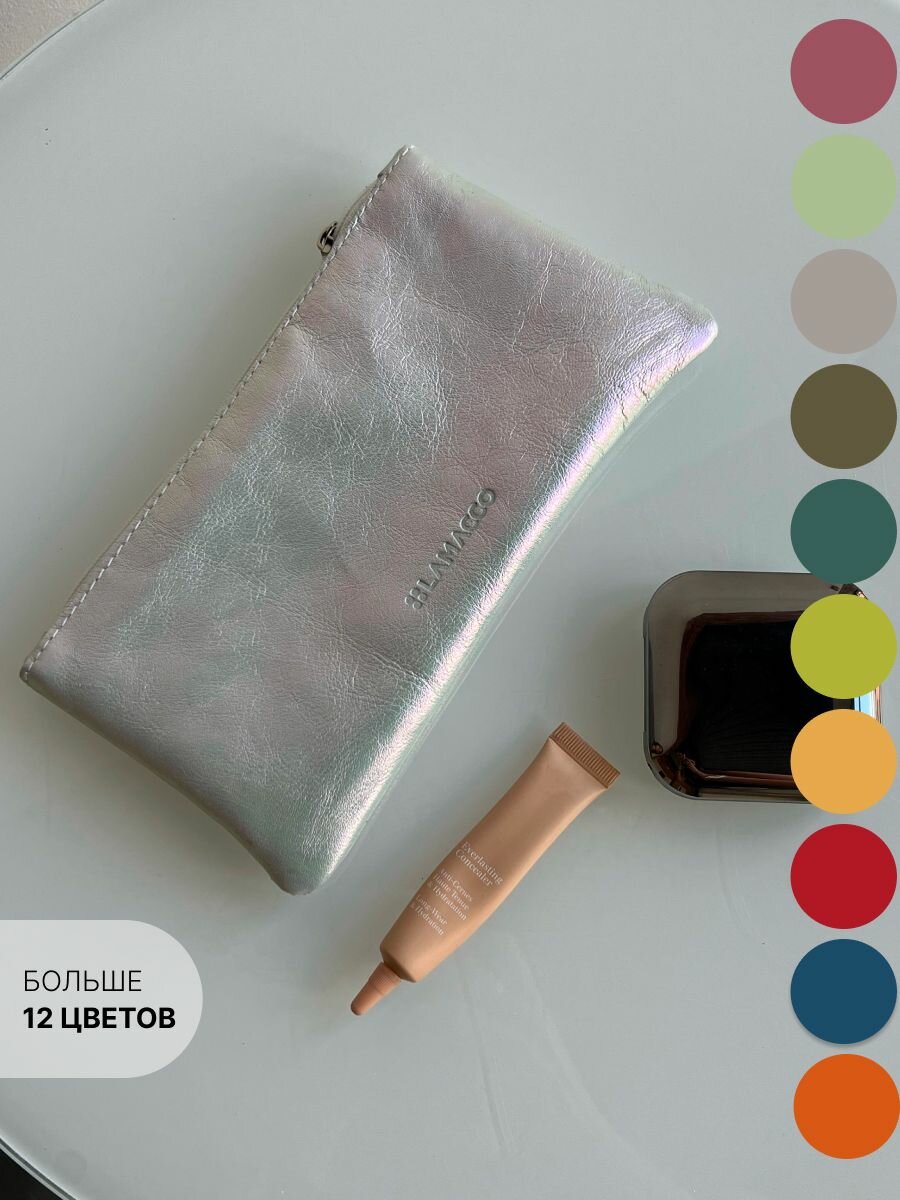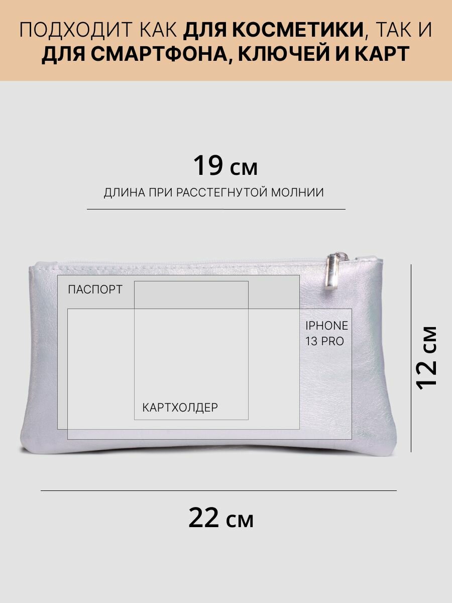 Косметичка натуральная кожа на молнии клатч кожаный , Lamacco , 8856L_Бежевое-серебро интересное:
