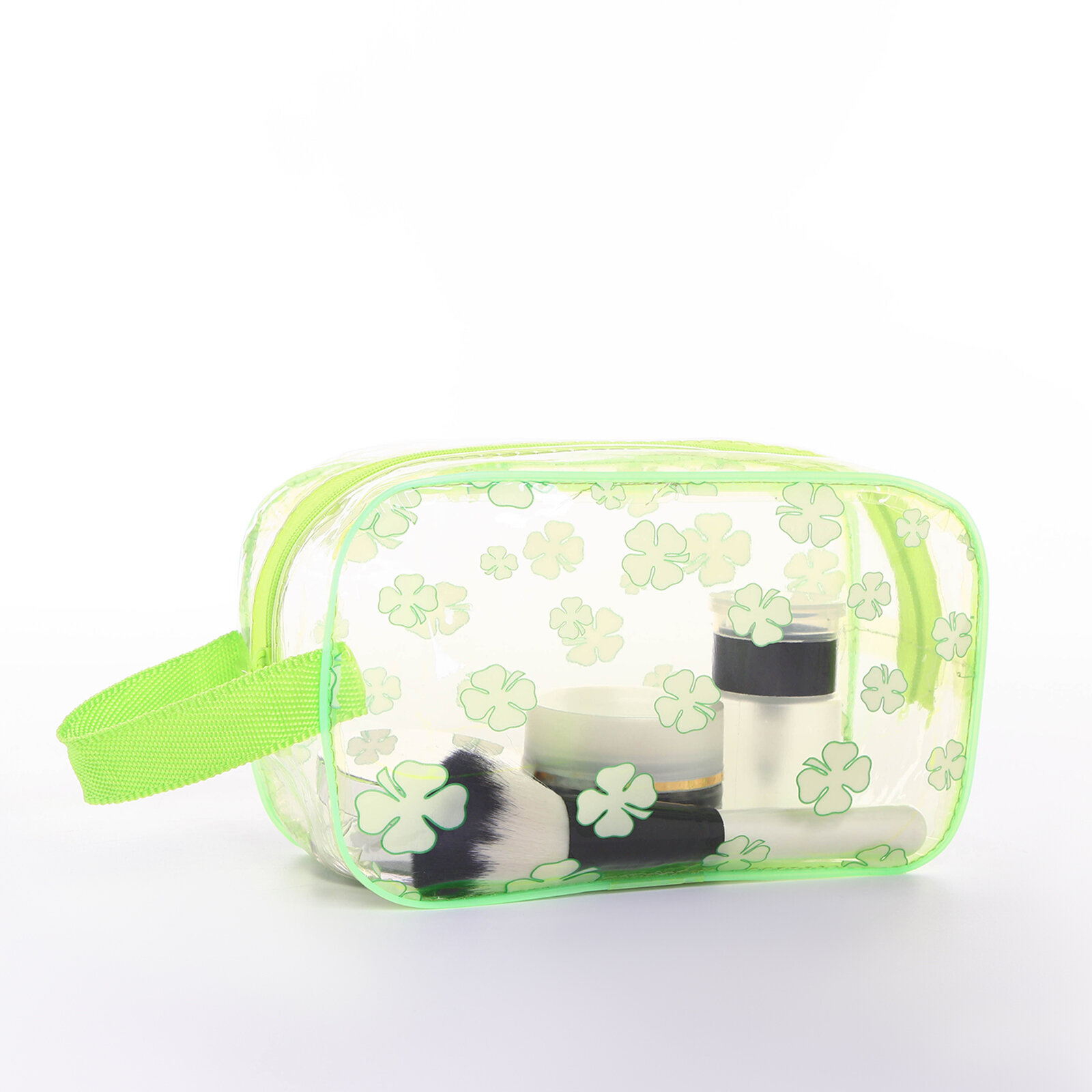 Косметичка ПВХ Клевер 21,5*12,5*7см, отд на молнии, с ручкой, голубой 717538