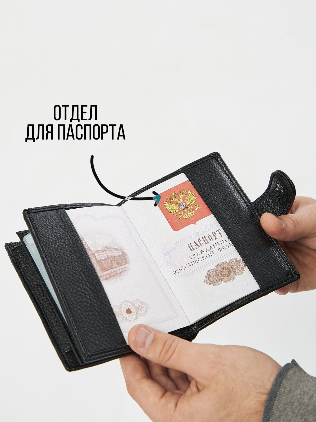 Кошелек портмоне Bagway мужской кожаный для паспорта и карт, черный интересное: