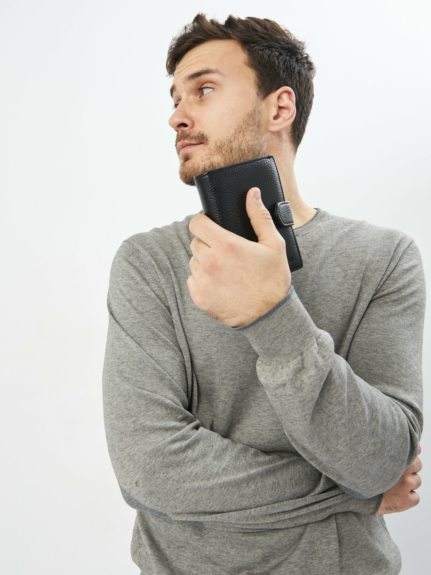 Кошелек-портмоне барсетка на "молнии" для паспорта и пластиковых карт, черный