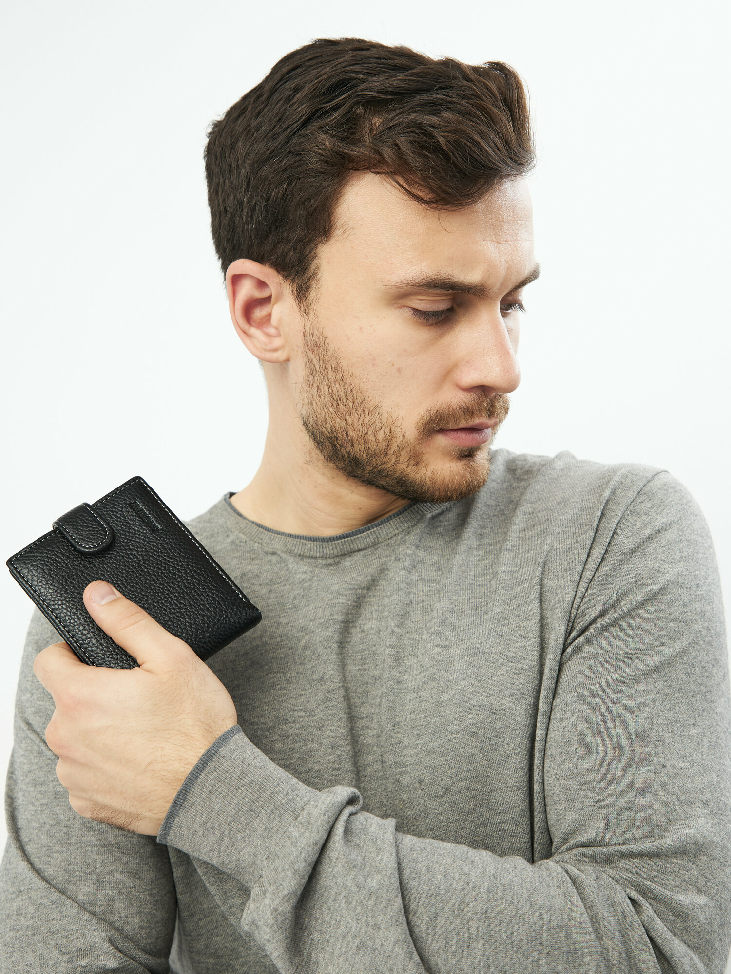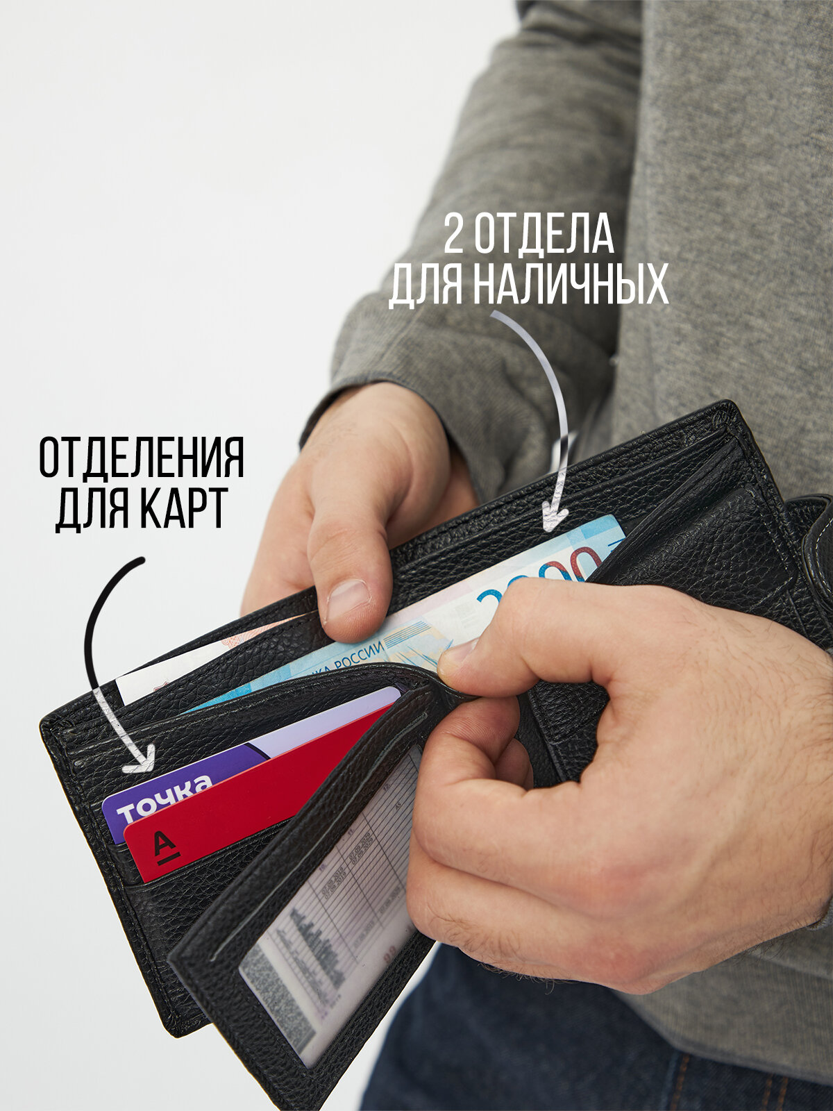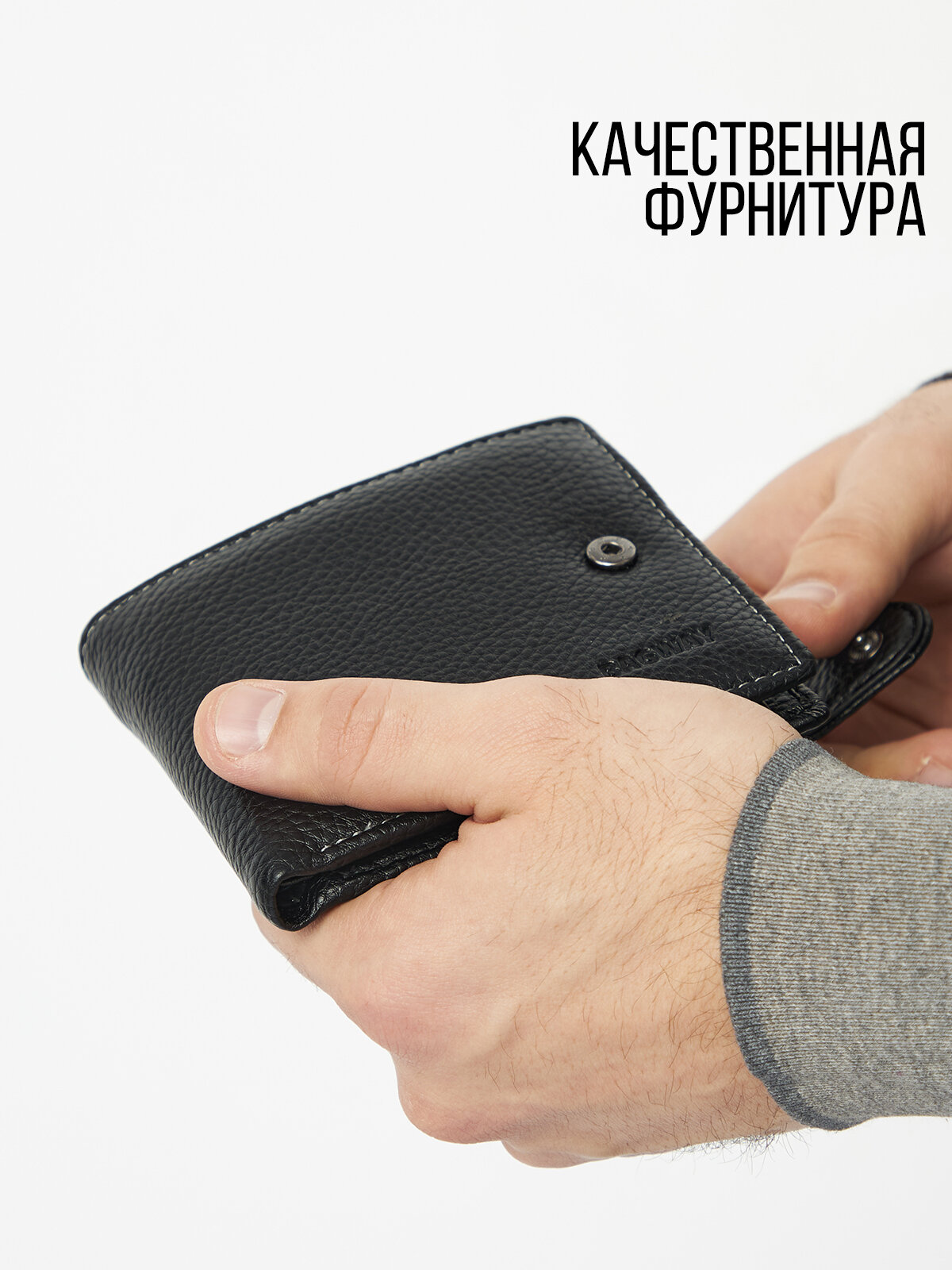 Кошелек портмоне Bagway мужской кожаный для паспорта и карт, черный