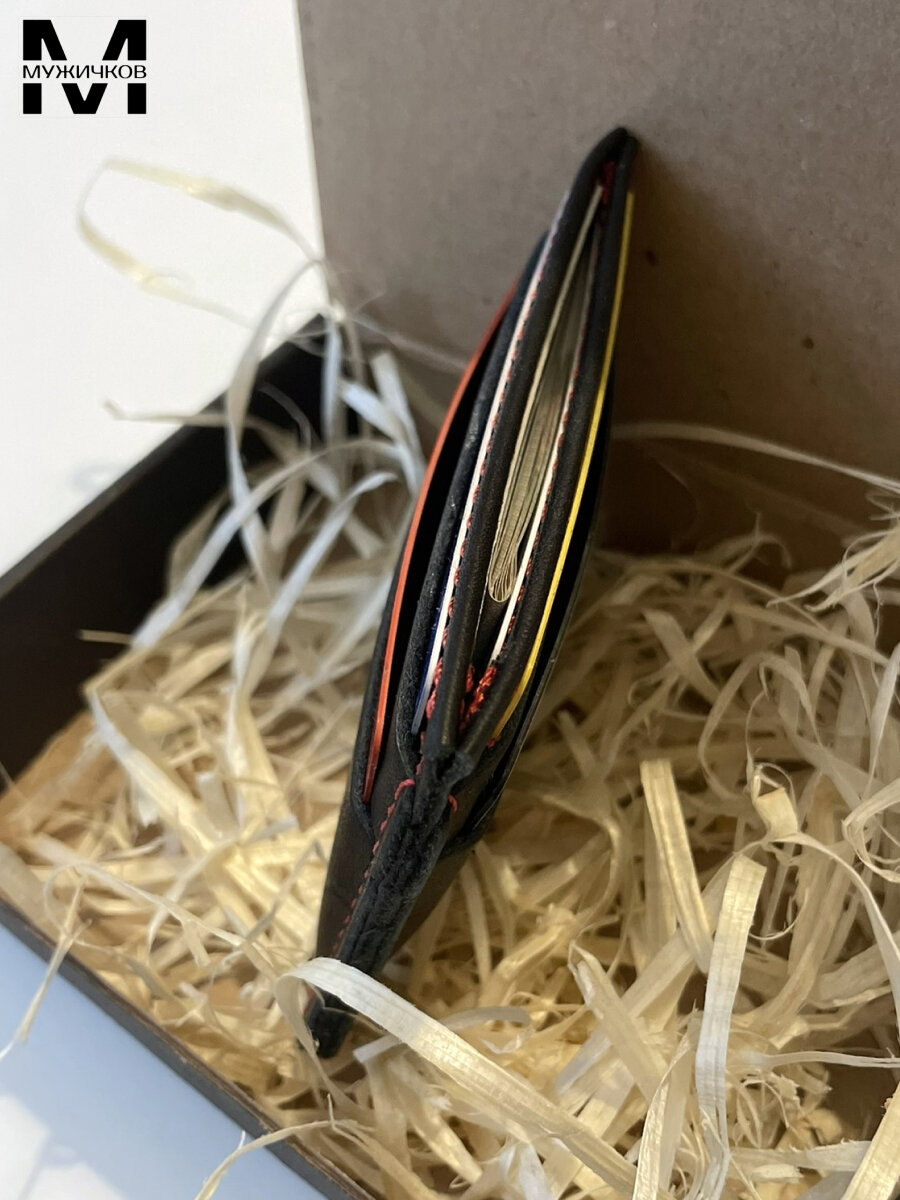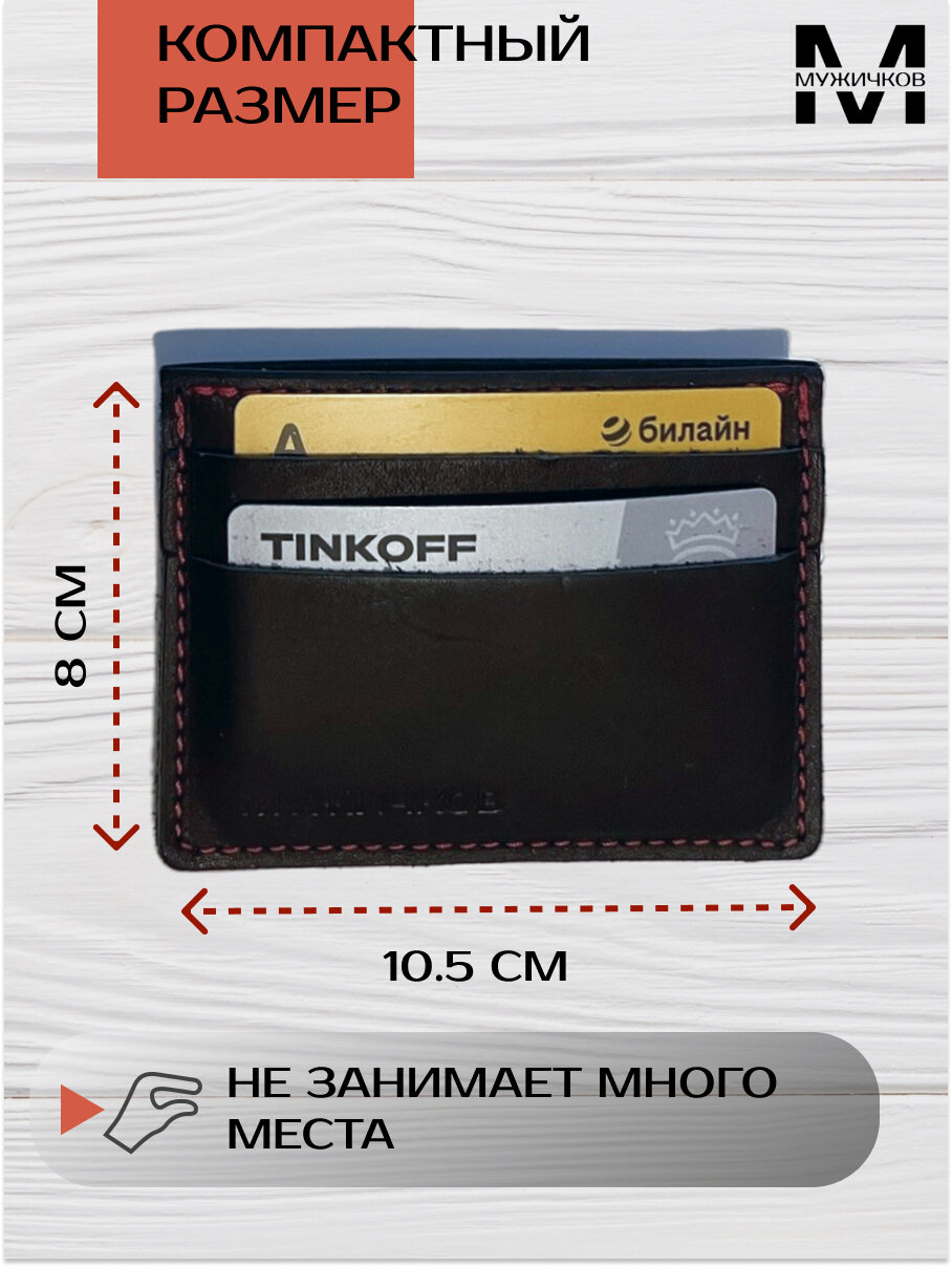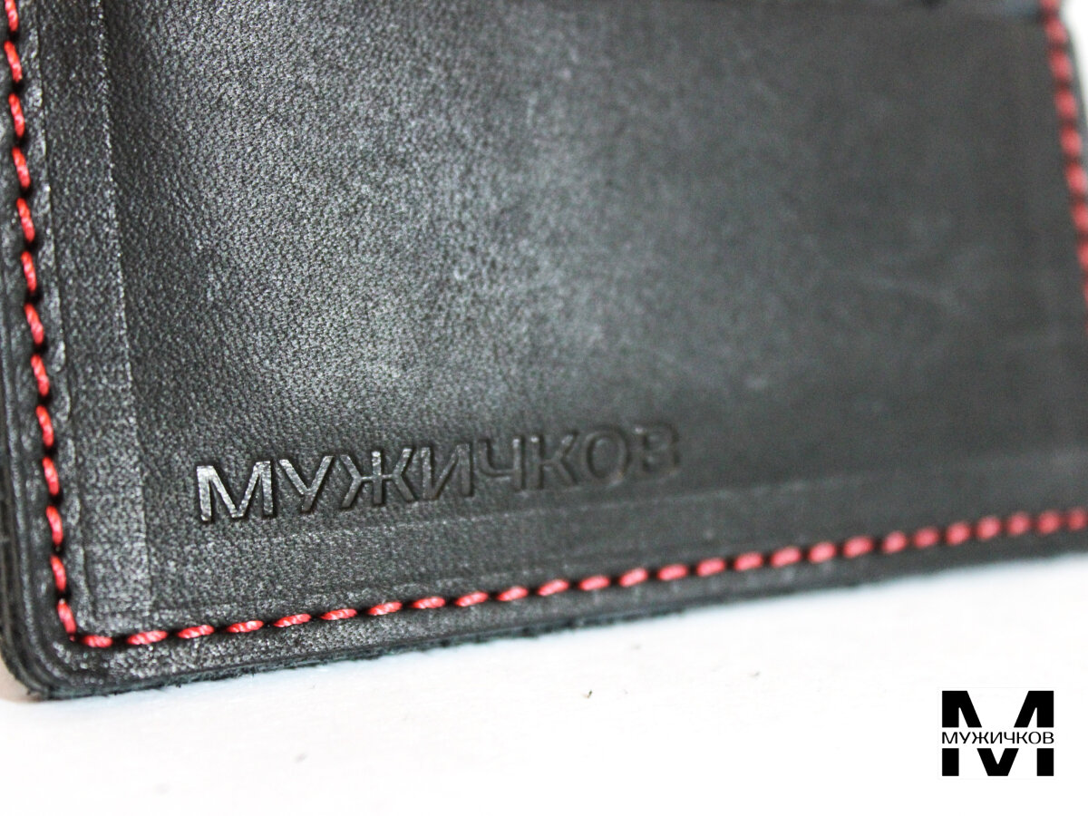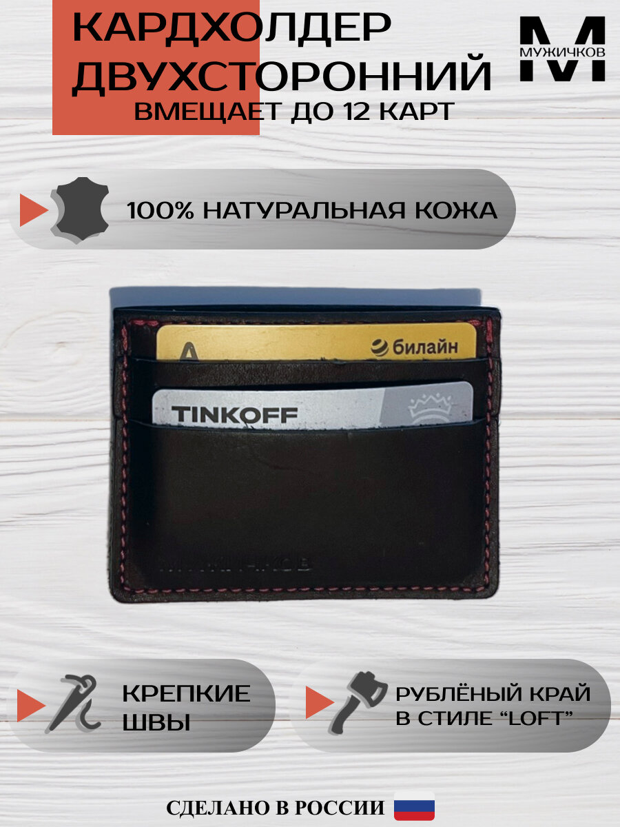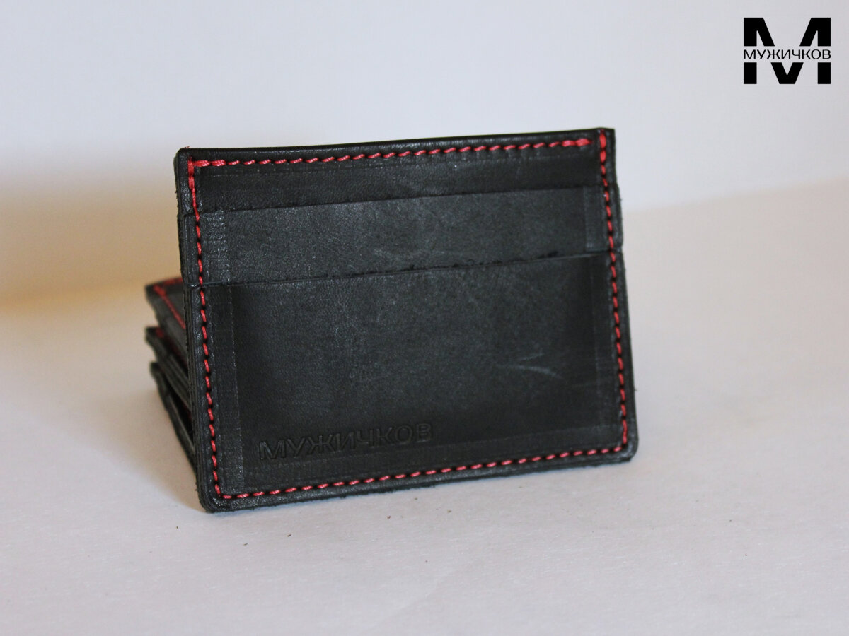 Картхолдер двухсторонний Мужичков из натуральной кожи, черный с красной прострочкой интересное: