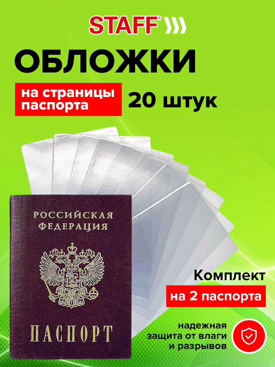 Купить Обложка (чехол) на паспорт / для документов для защиты каждой страницы комплект 20 штук, Пвх, прозрачная, Staff