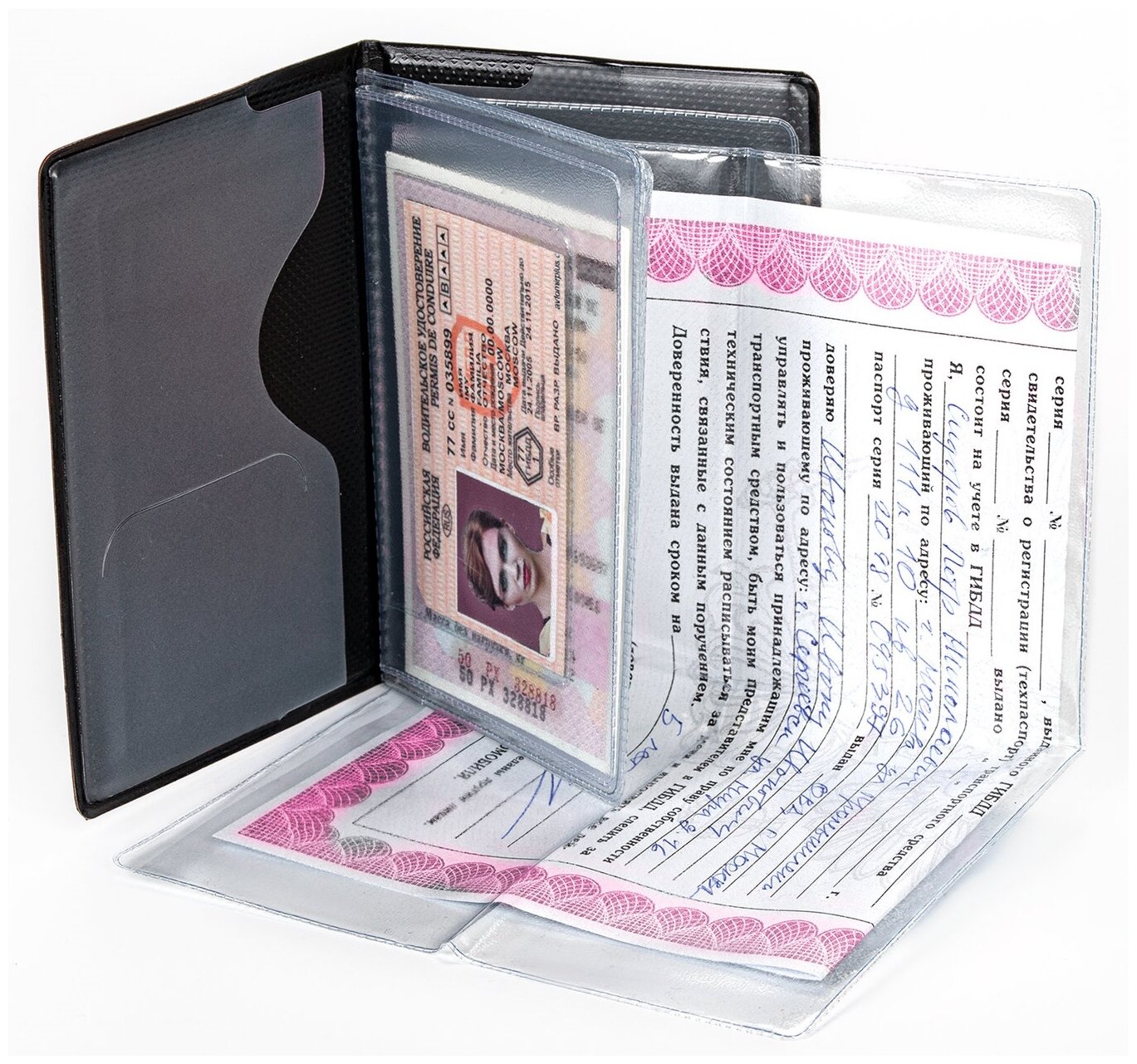 Обложка для автодокументов STAFF, полиуретан под кожу, "автодокументы", черная, 237597