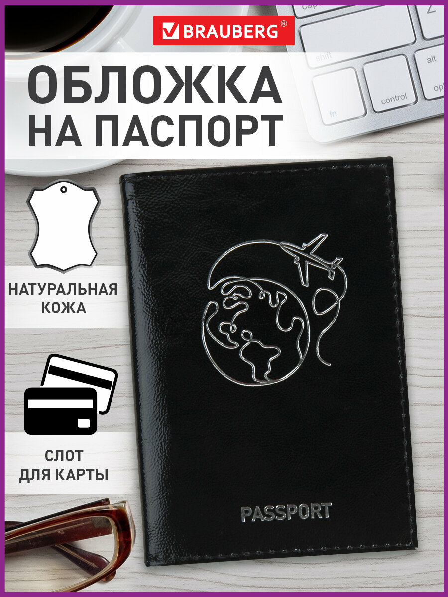 Обложка (чехол) на паспорт / для документов натуральная кожа черная, Brauberg интересное:
