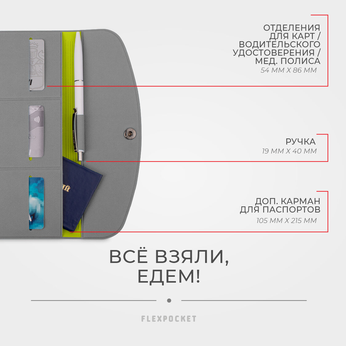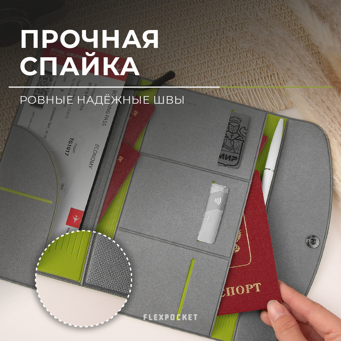 Папка для путешествий Flexpocket, органайзер на кнопке для документов в путешествие, серый интересное: