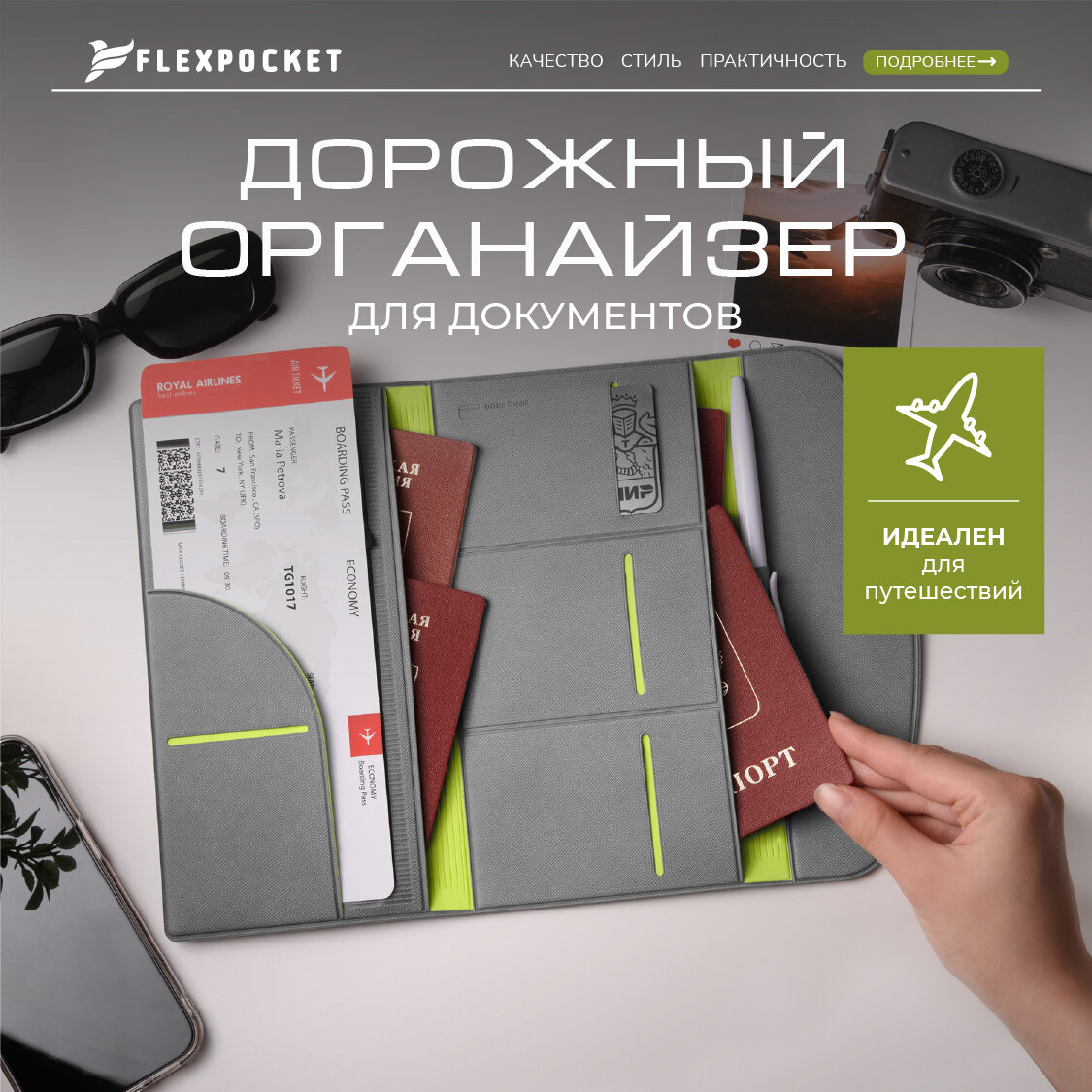 Ниже Вы можете прочитать отзывы на Папка для путешествий Flexpocket, органайзер на кнопке для документов в путешествие, серый, ознакомится с подробными характеристиками, посмотреть интересные обзоры и фотографии на Папка для путешествий Flexpocket, органайзер на кнопке для документов в путешествие, серый.
