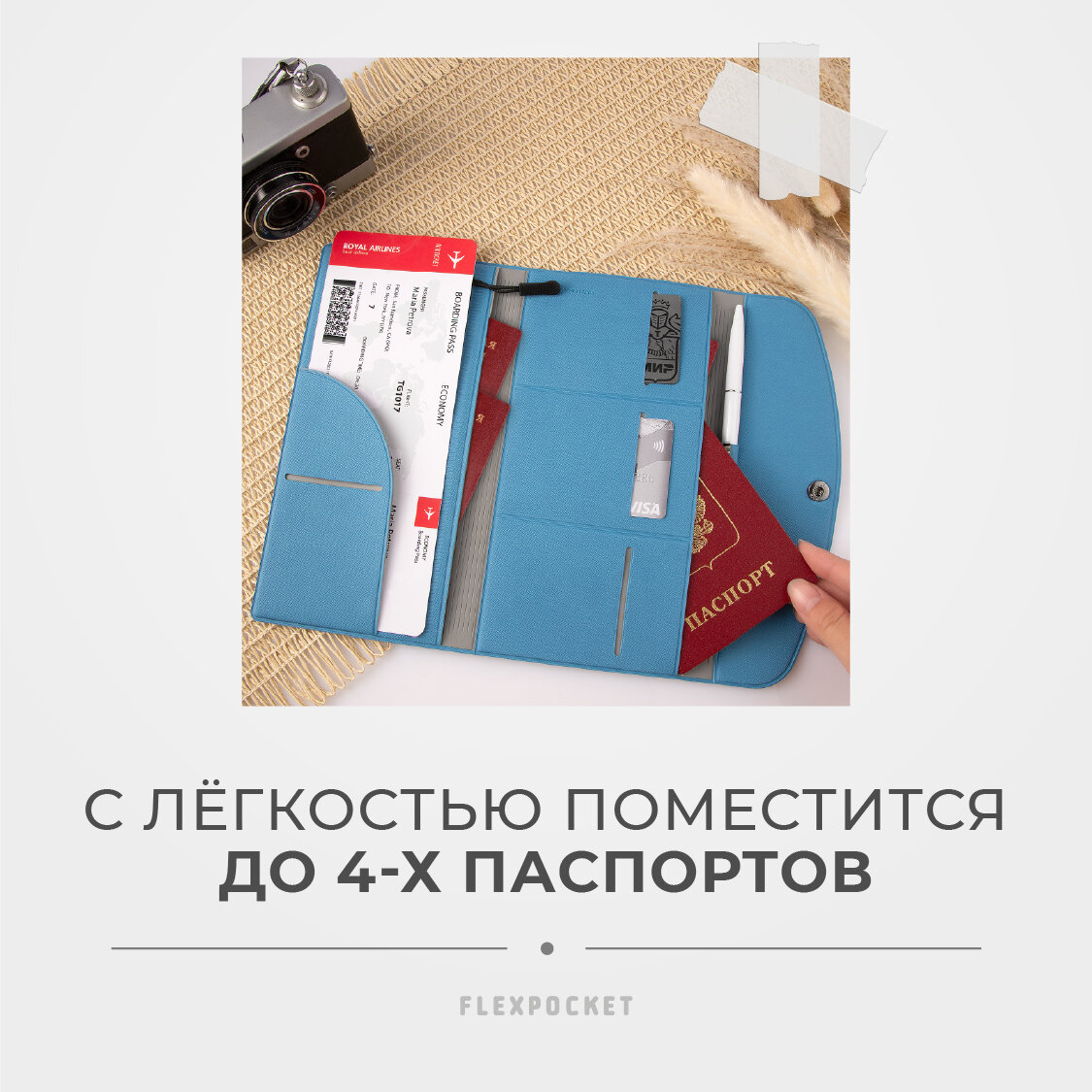 Папка для путешествий Flexpocket, органайзер на кнопке для документов в путешествие, голубой интересное: