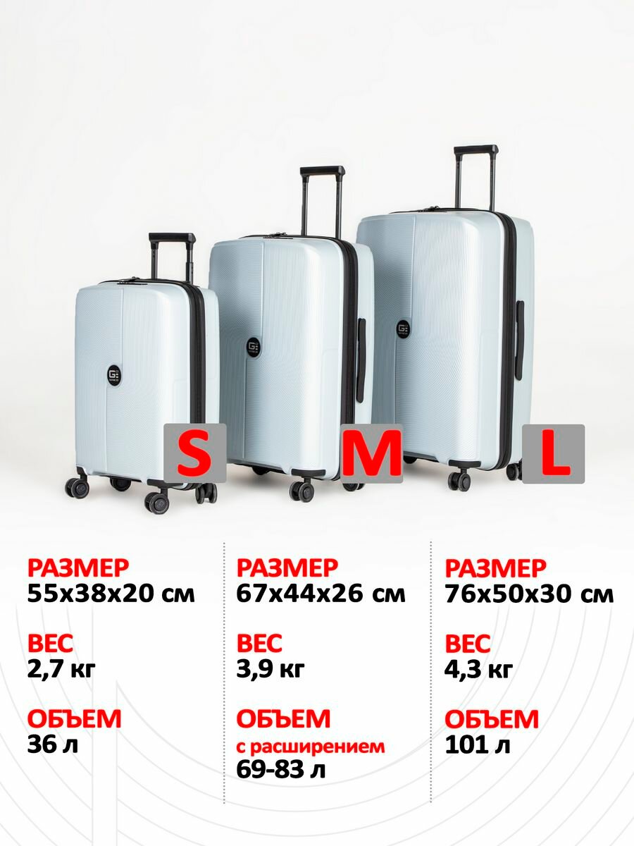 Чемодан G SPACE, 36 л, размер S+, серый металлик
