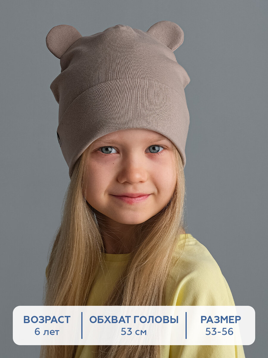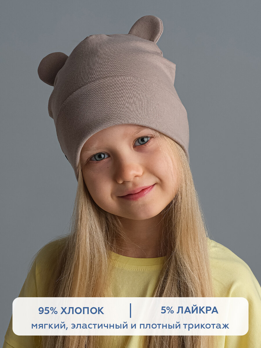 СохранитьШапка бини JUMBI Шапка детская весна лето осень трикотажная двухслойная с ушками, размер 45-48, бежевый интересное: