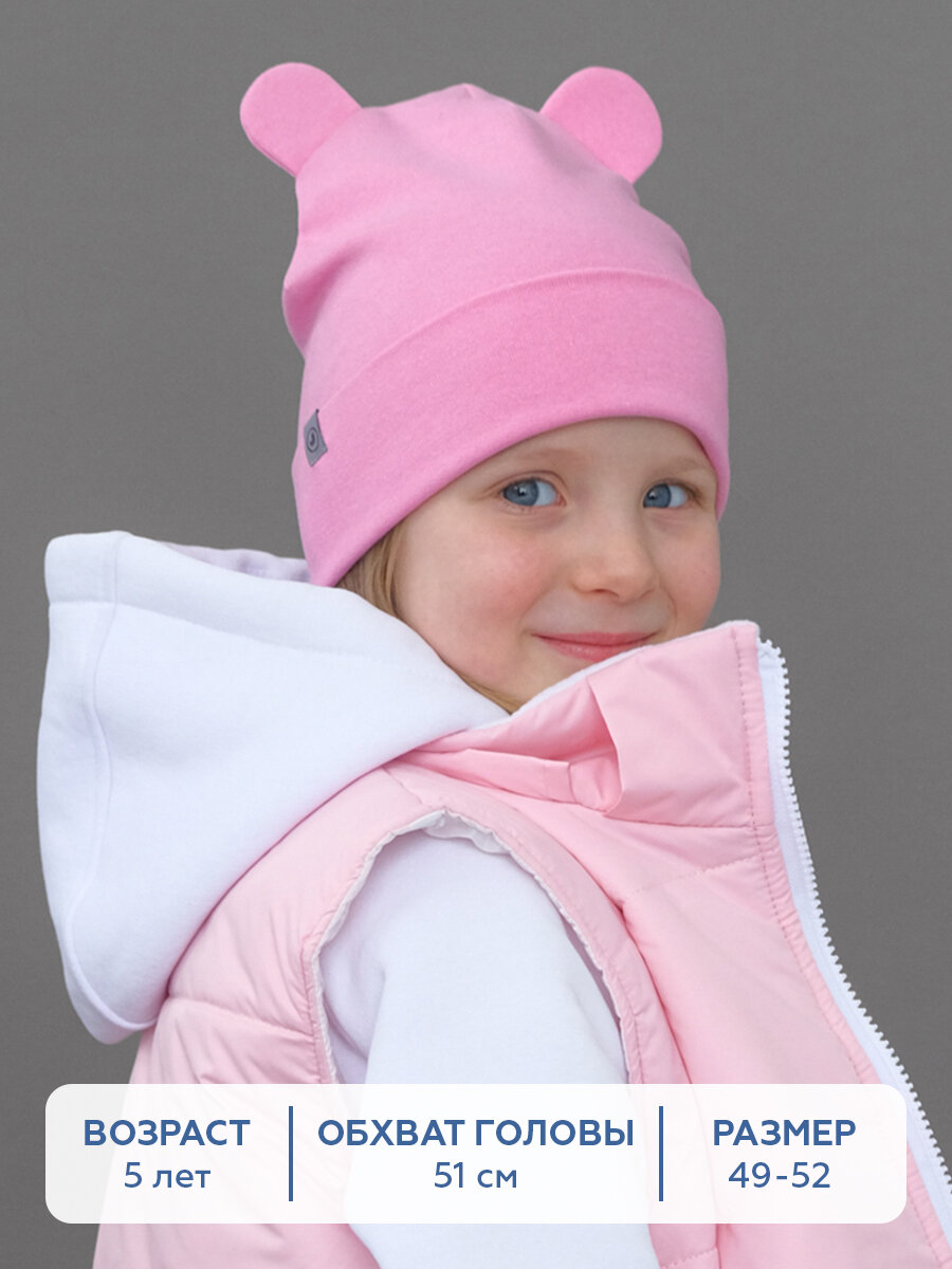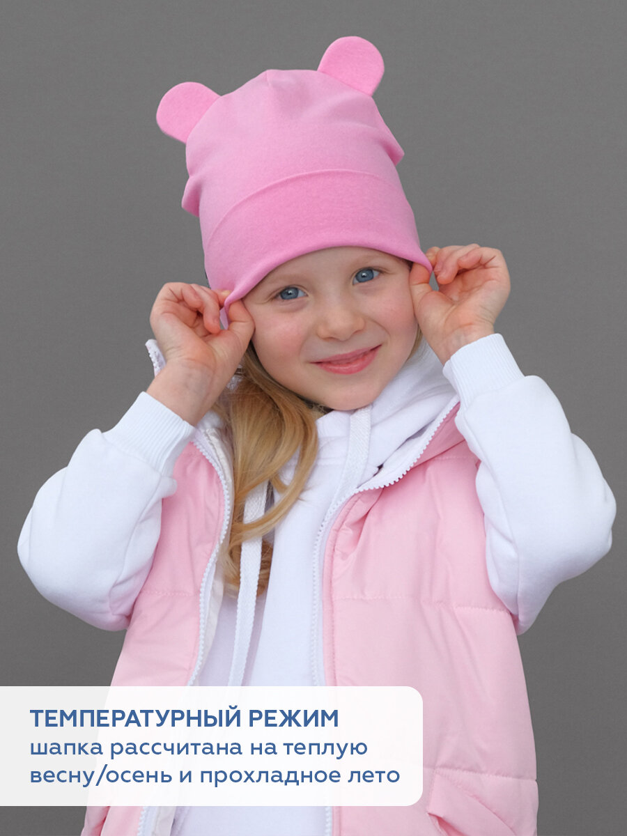 Шапка бини JUMBI Шапка для девочек весна лето осень трикотажная двухслойная с ушками, размер 49-52, розовый