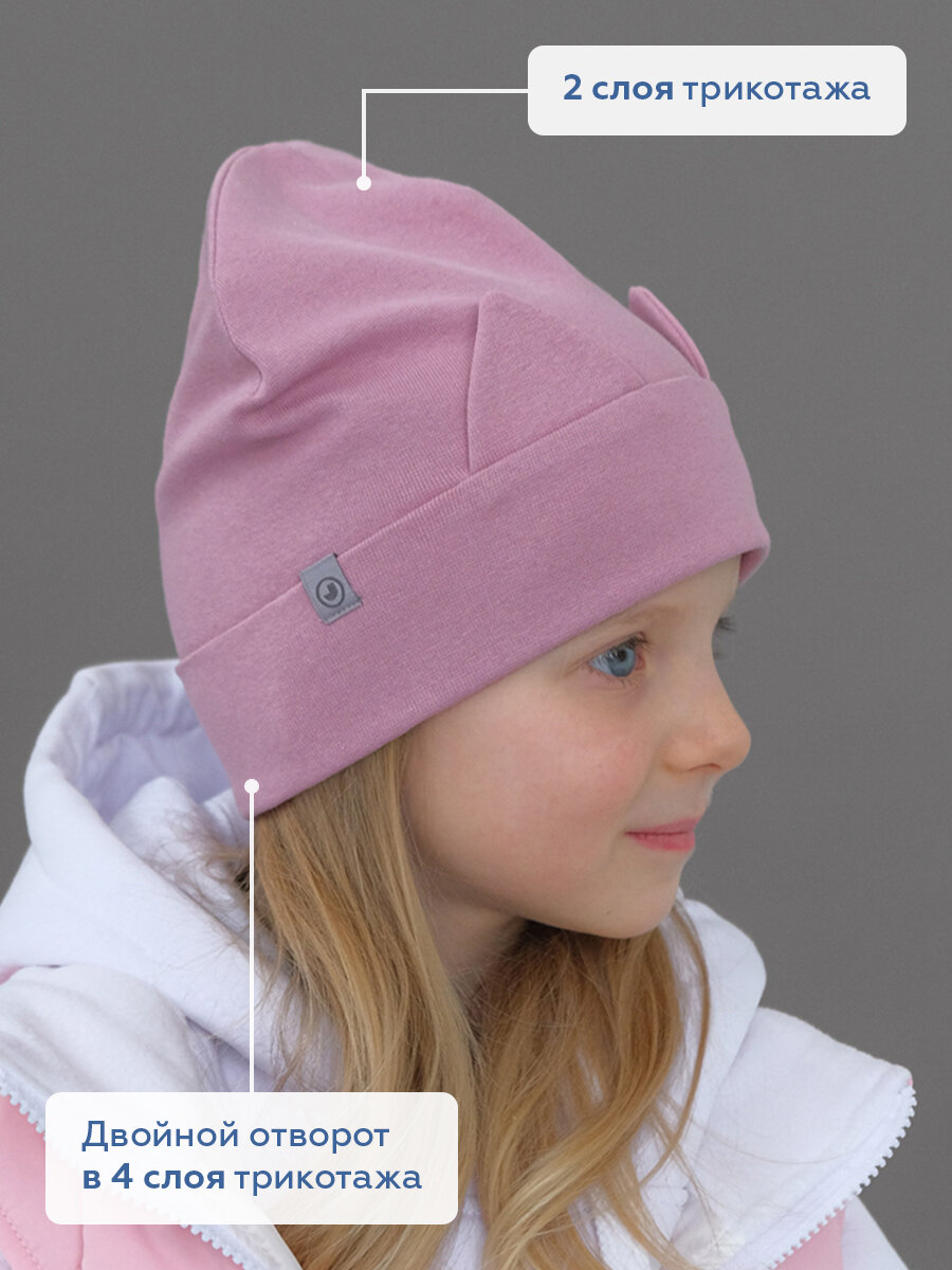 СохранитьШапка бини JUMBI Шапка для девочек весна лето осень трикотажная двухслойная с ушками, размер 53-56, розовый, пыльная роза интересное: