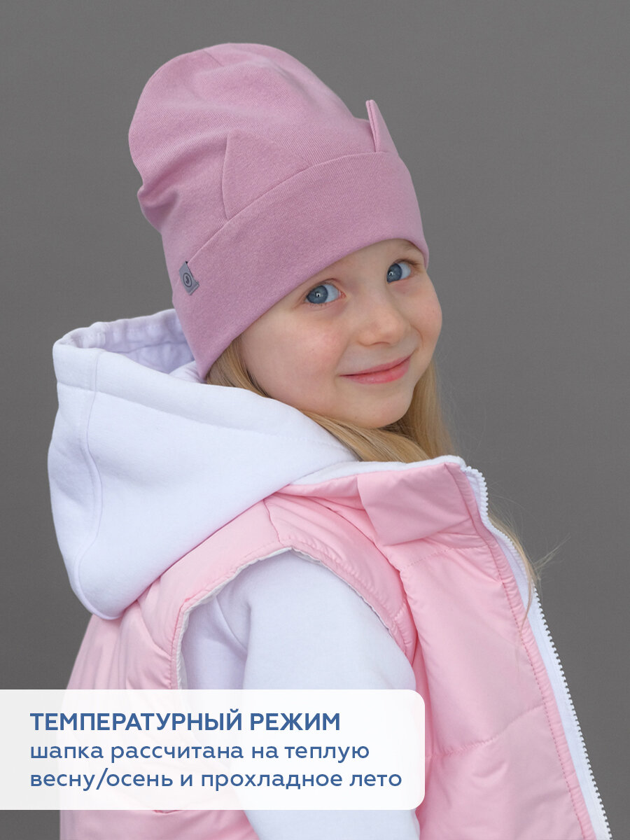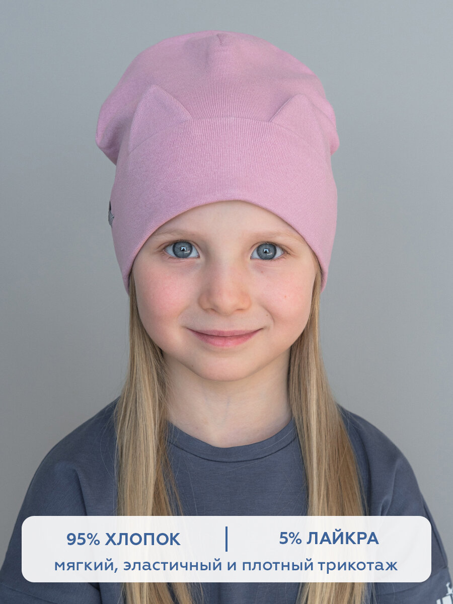 Купить Шапка бини JUMBI Шапка для девочек весна лето осень трикотажная двухслойная с ушками, размер 53-56, розовый, пыльная роза